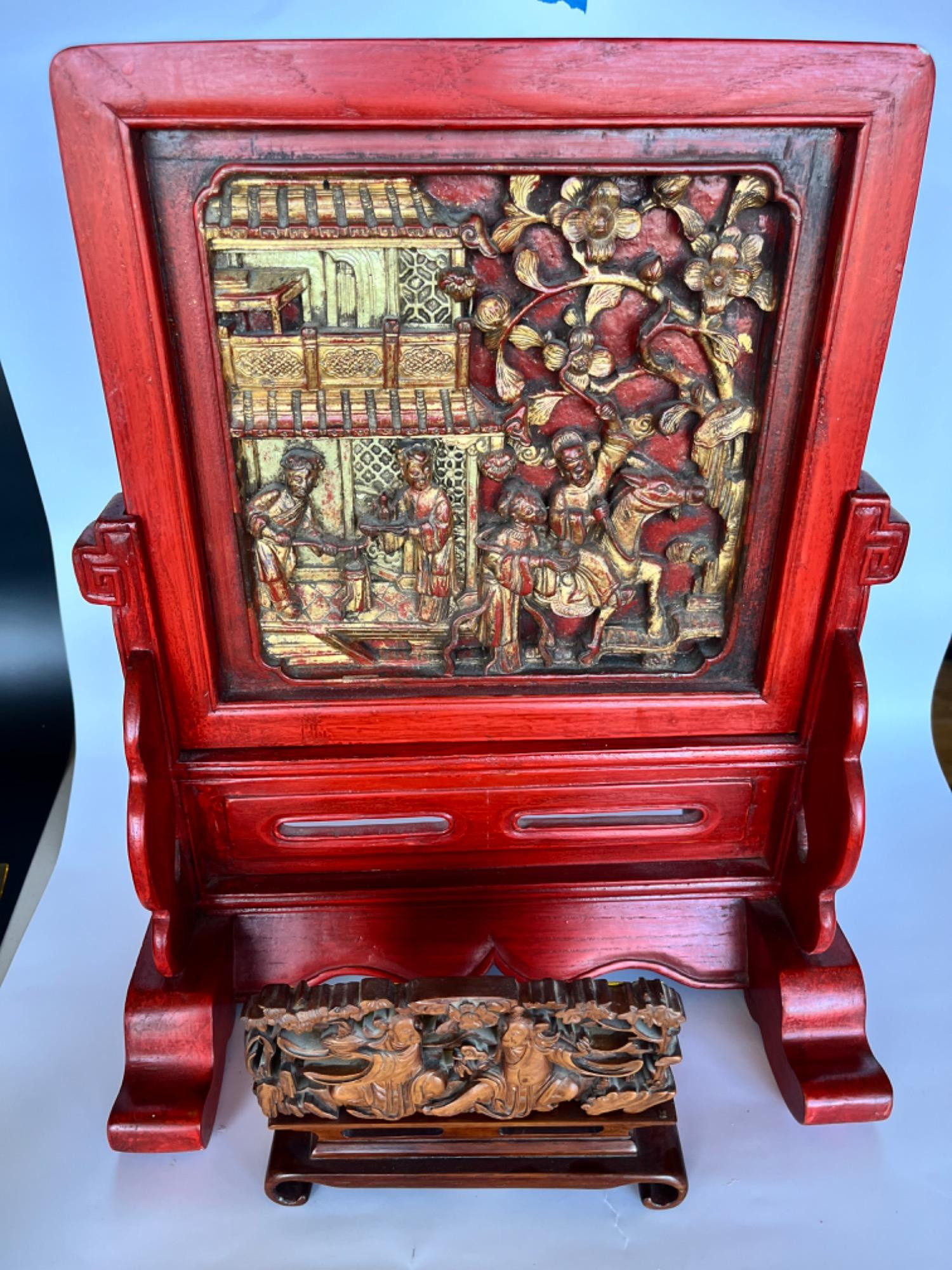 Lot # 141 - Chinese Wood Table Screen and Other Small Table Screen Scene