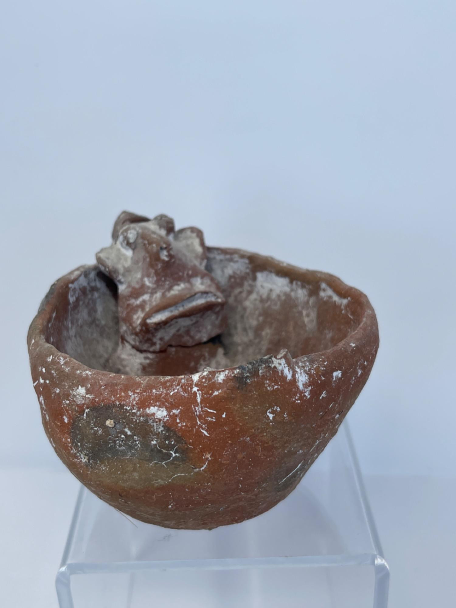 Pre-Columbian Bowl, appears to be broken on one side. Measures- 5 x 3 Antique items offered for auction on the Site are sold “as is”. We endeavor to describe and display the items accurately and truthfully; however, we cannot guarantee the accuracy or reliability of any item’s description or condition. We strongly encourage all bidders to review images, descriptions, and condition reports and to contact us for additional information prior to bidding.