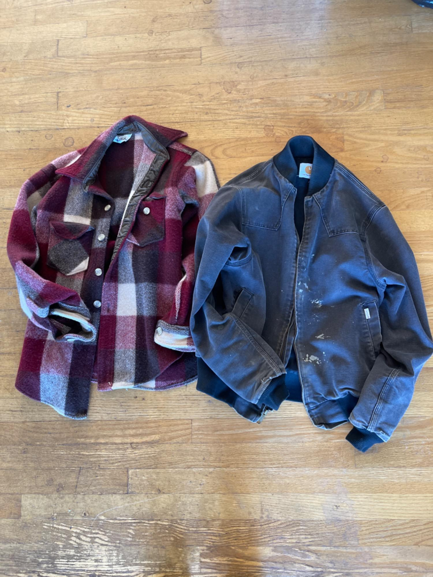 Woolrich Flannel Vintage Shirt and Carhartt Vintage Coat-Both Small. Coat has some paint on front.