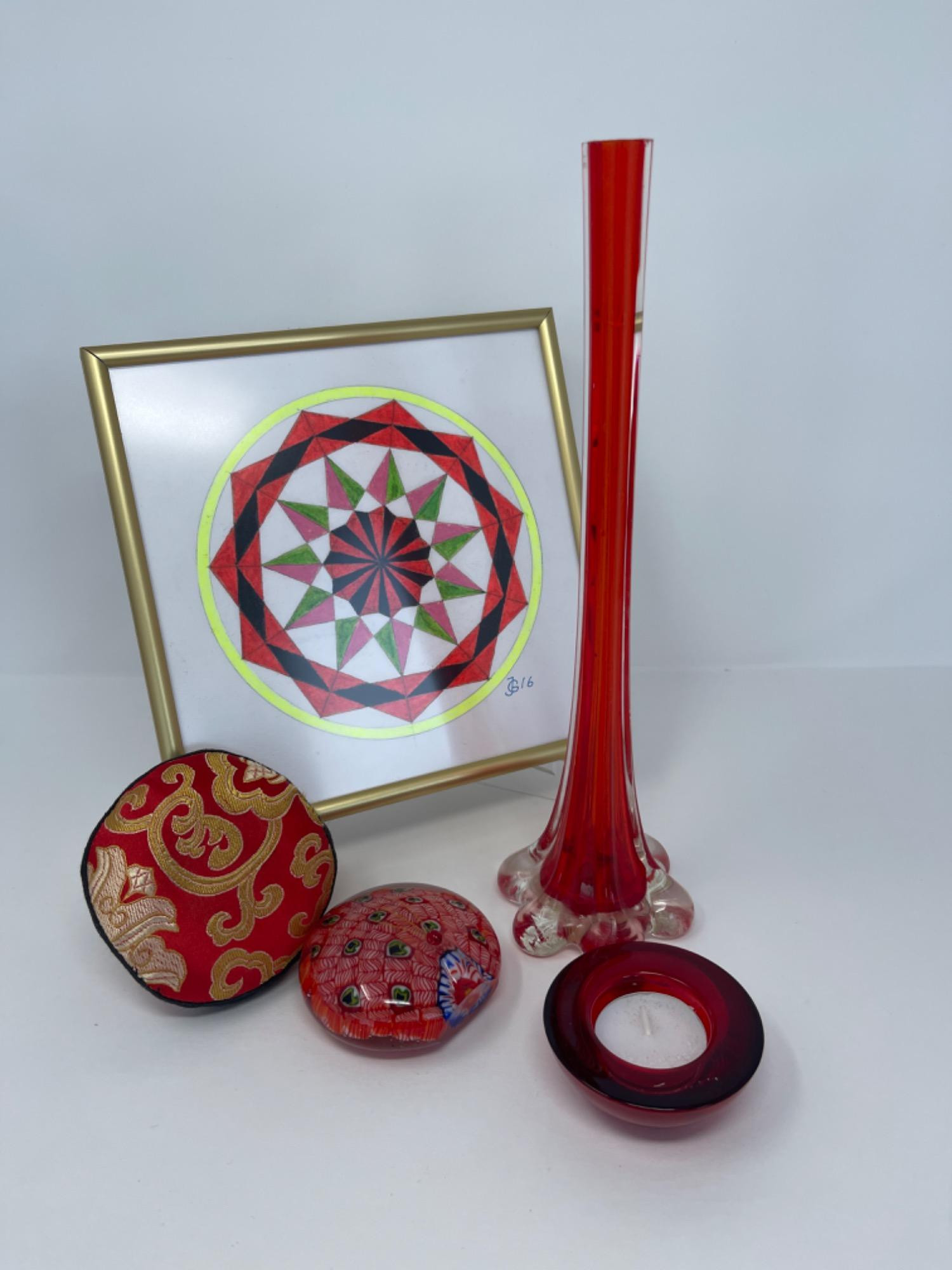 Lot # 177 - Red Swung Vase, Origami Art, Paperweight and More
