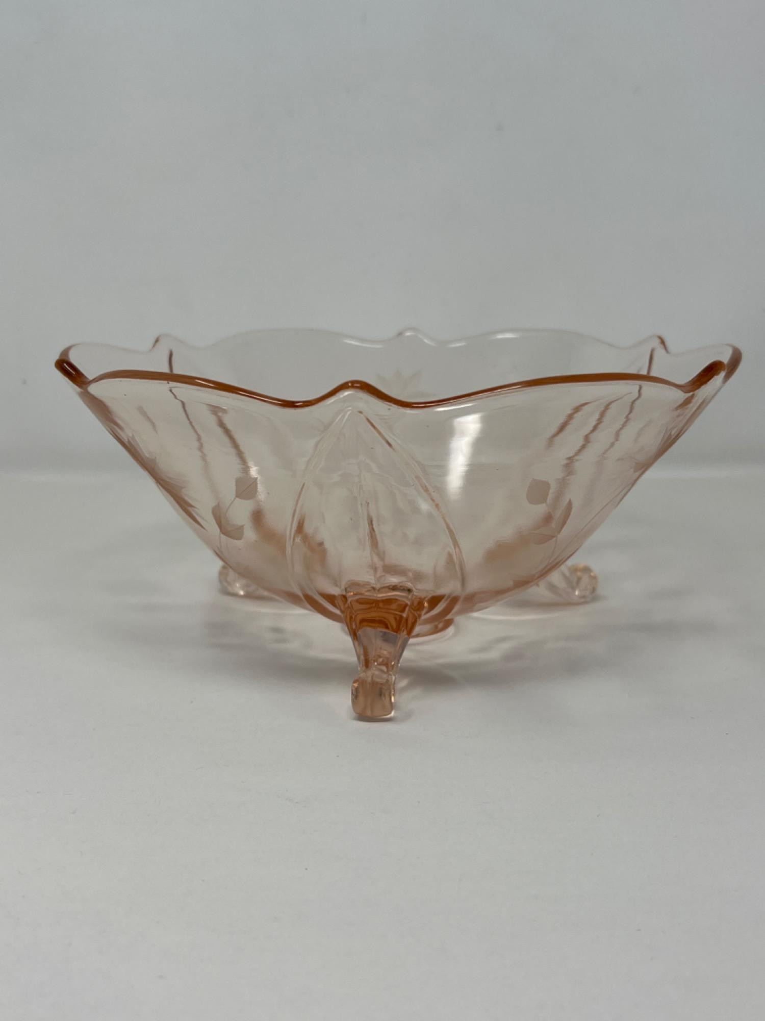 Lot # 80 - Three Footed Pink Etched Depression Glass Bowl