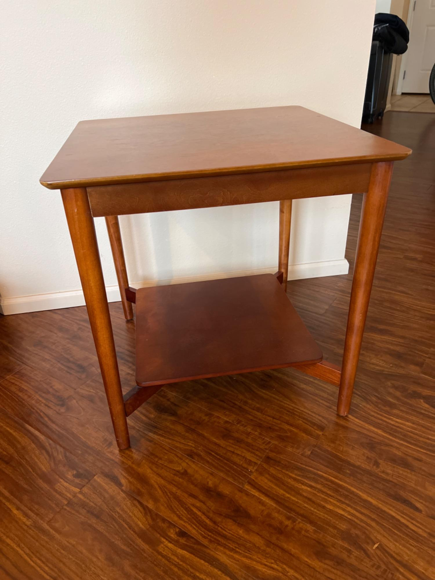 Classic style, bottom shelf, square end table with lower storage shelf.
