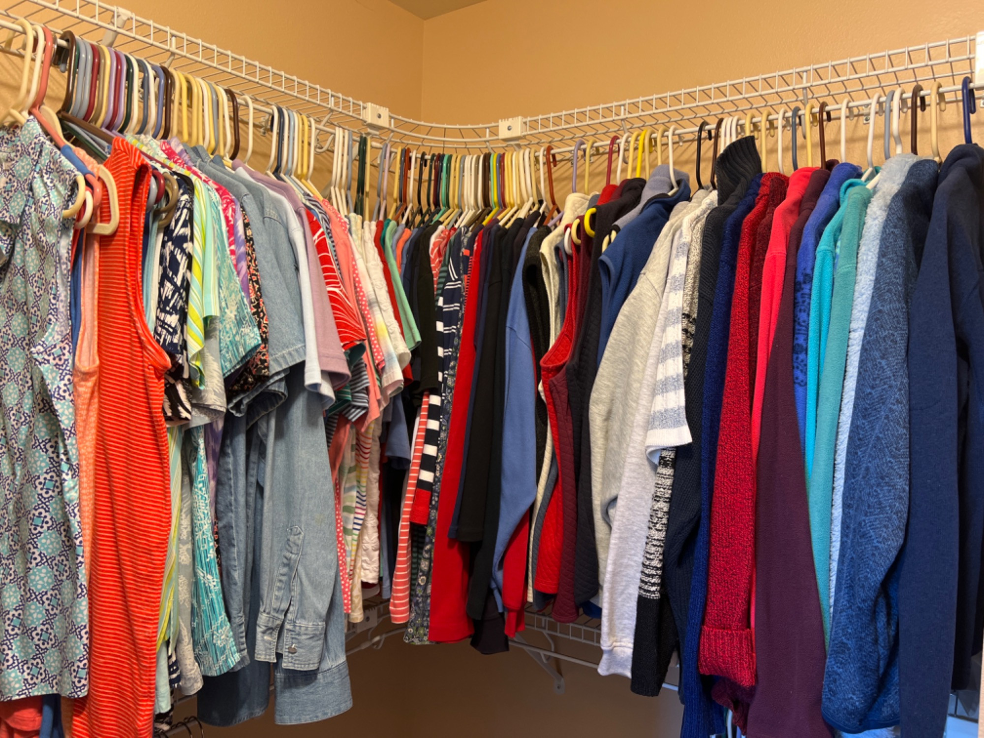 Closet rack full of various colors, styles and brands Women's casual & sport tops, size Medium. Some of the brands you'll find are Land's End, Indigo, JM Collection, Laura Scott, Style & Co, Alfred Dunner, Karen Scott Sport, New Frontier and more.