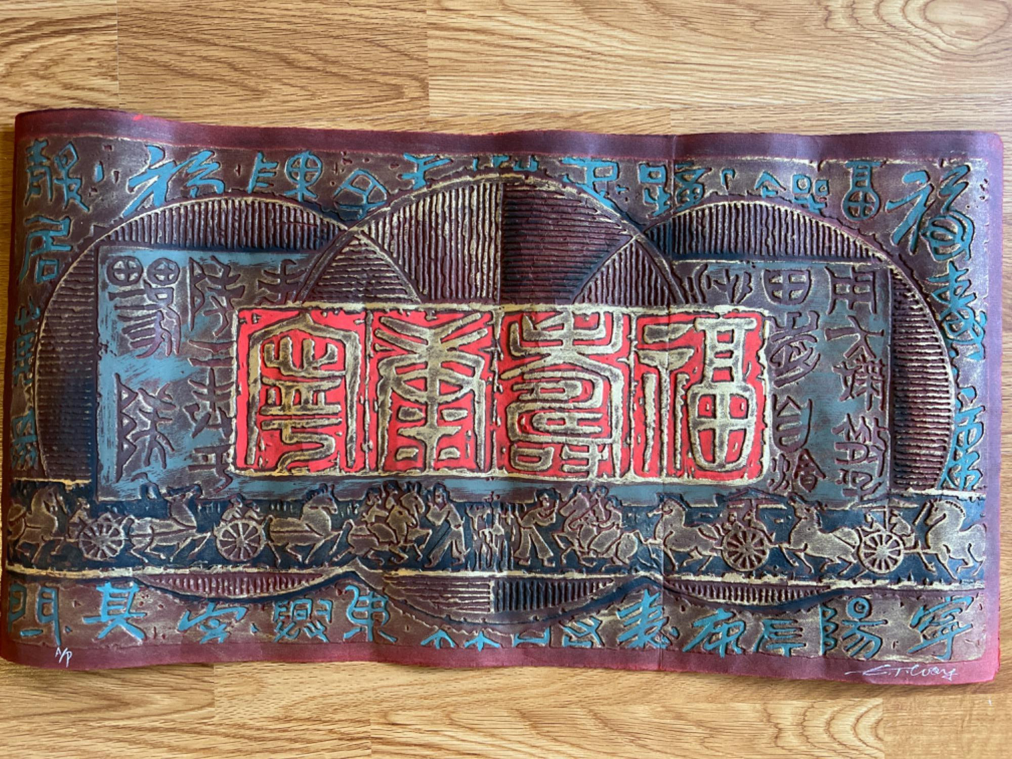 Artist proof Chinese inked calligraphy artwork on specialty art paper. Signed by C. T. Way, artist.