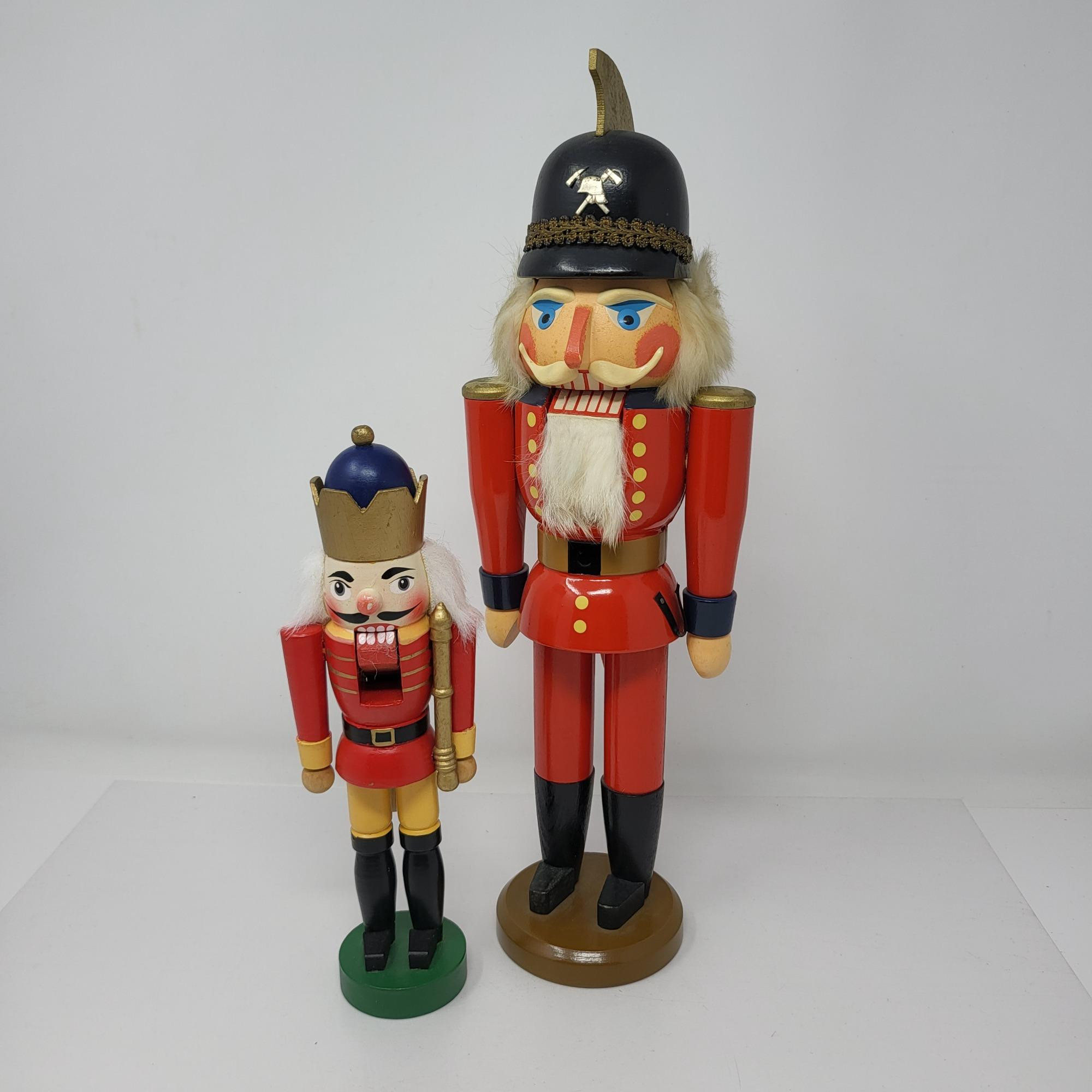 Vintage German soldier 15.25" tall wood nutcracker. Acquired in Germany at the Christmas market. Smaller 10" nutcracker with baton.