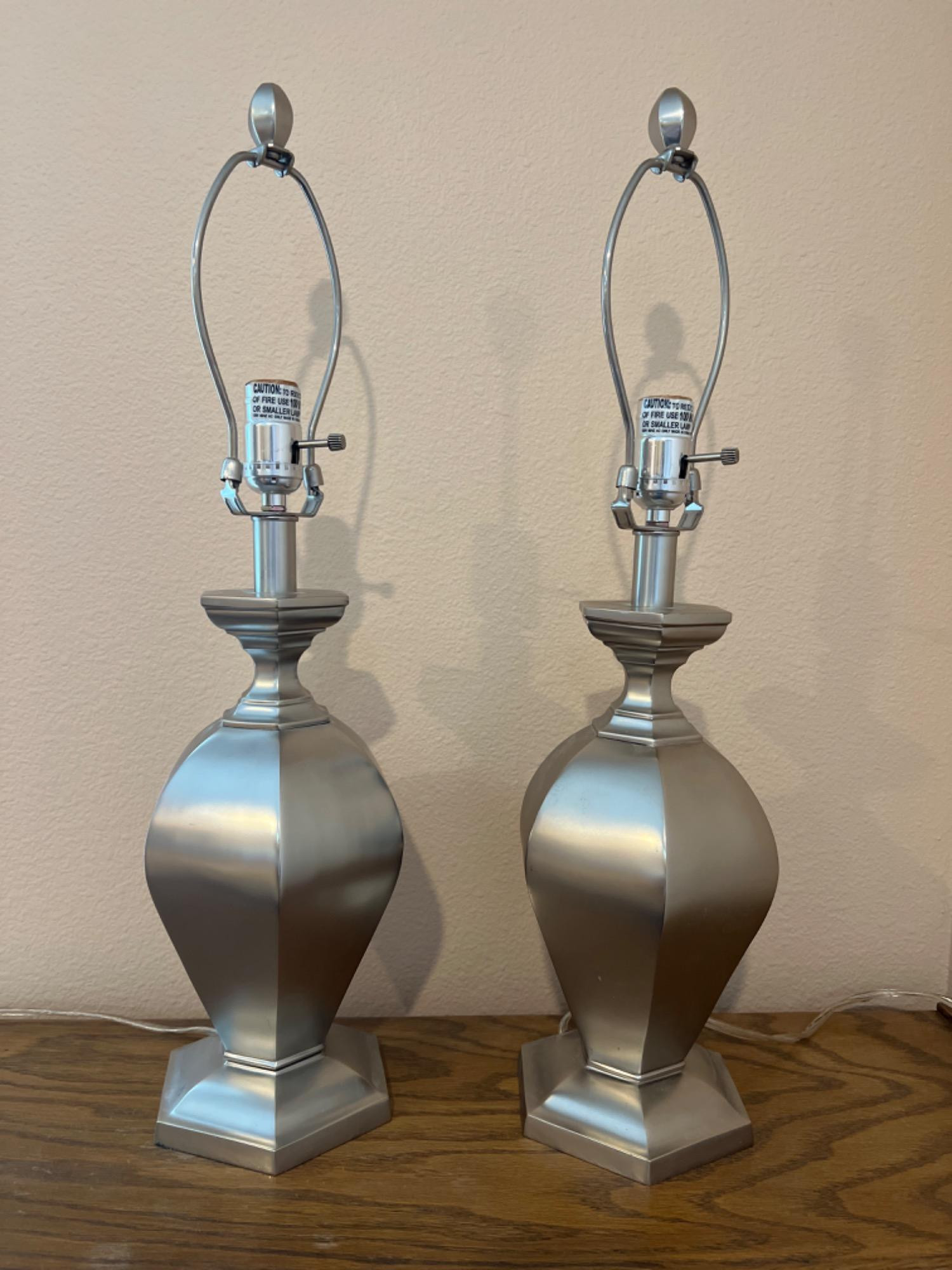 Lot # 183 - Pair Pottery Barn Silver Toned Lamps