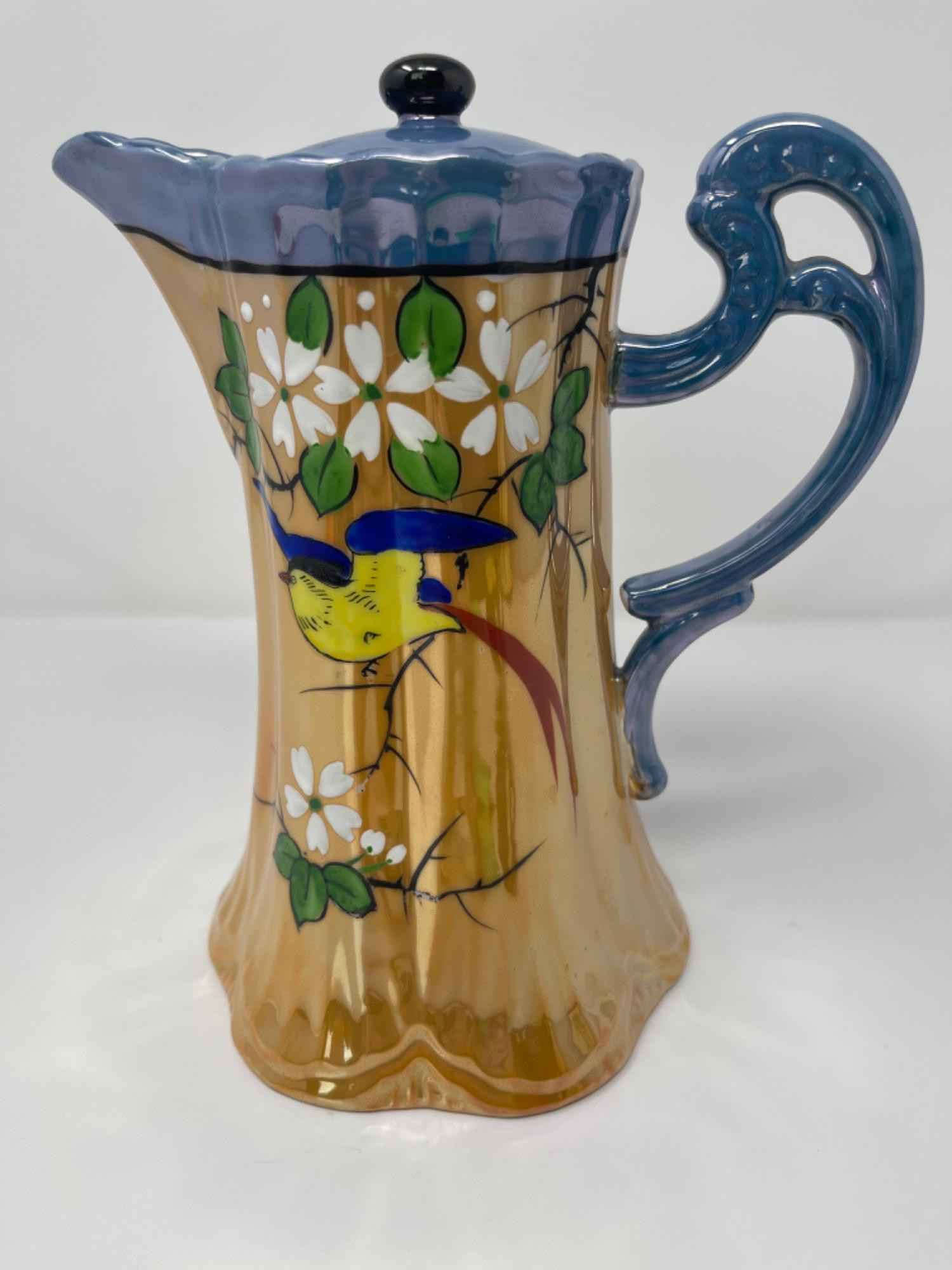 Lot # 23 - Hand-Painted Lusterware Bird Motif Chocolate Pot - 8 T x 6.5