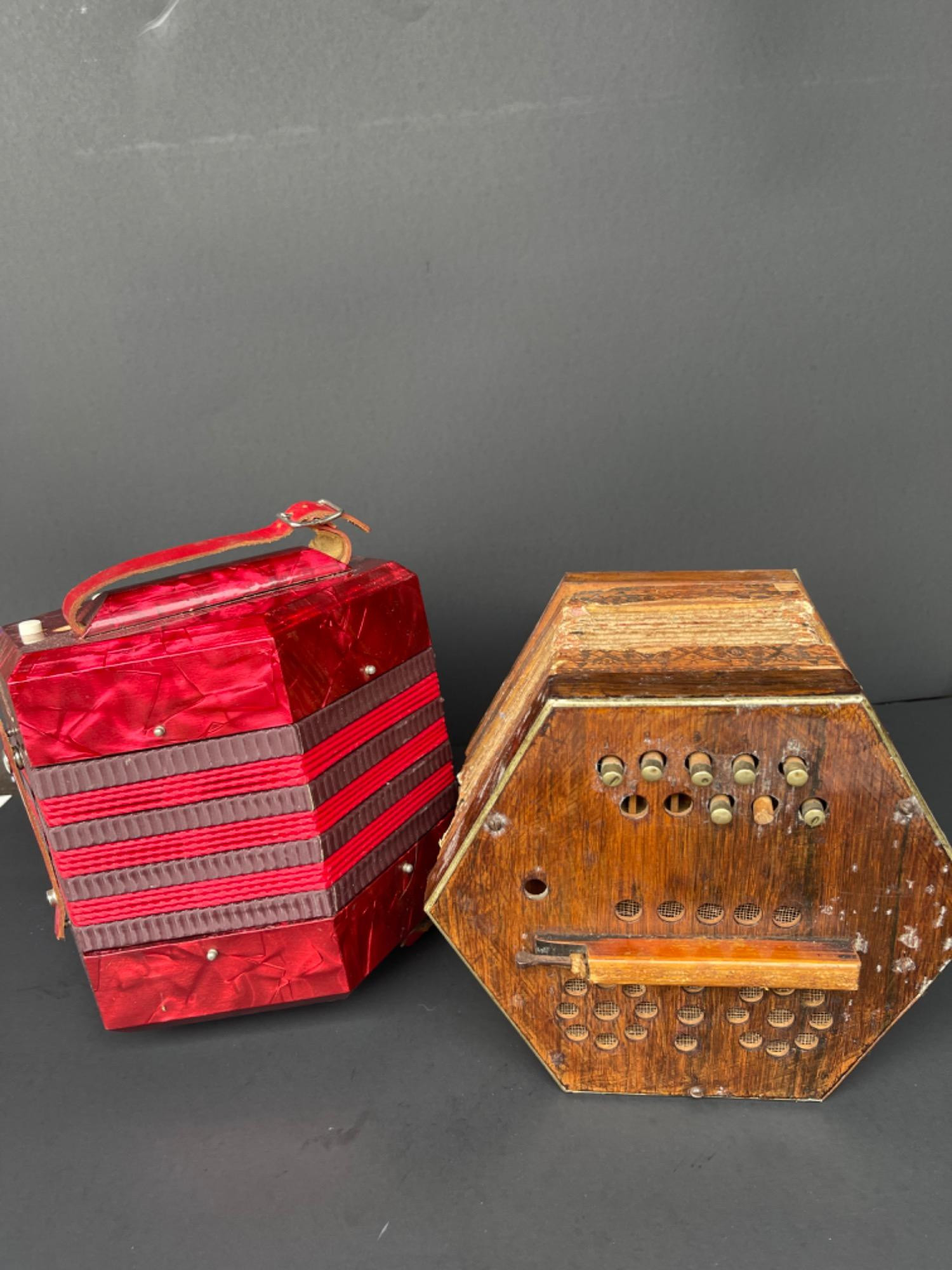 Lot # 61 - Red Italian Riccordi Accordion and Antique Wood Accordion