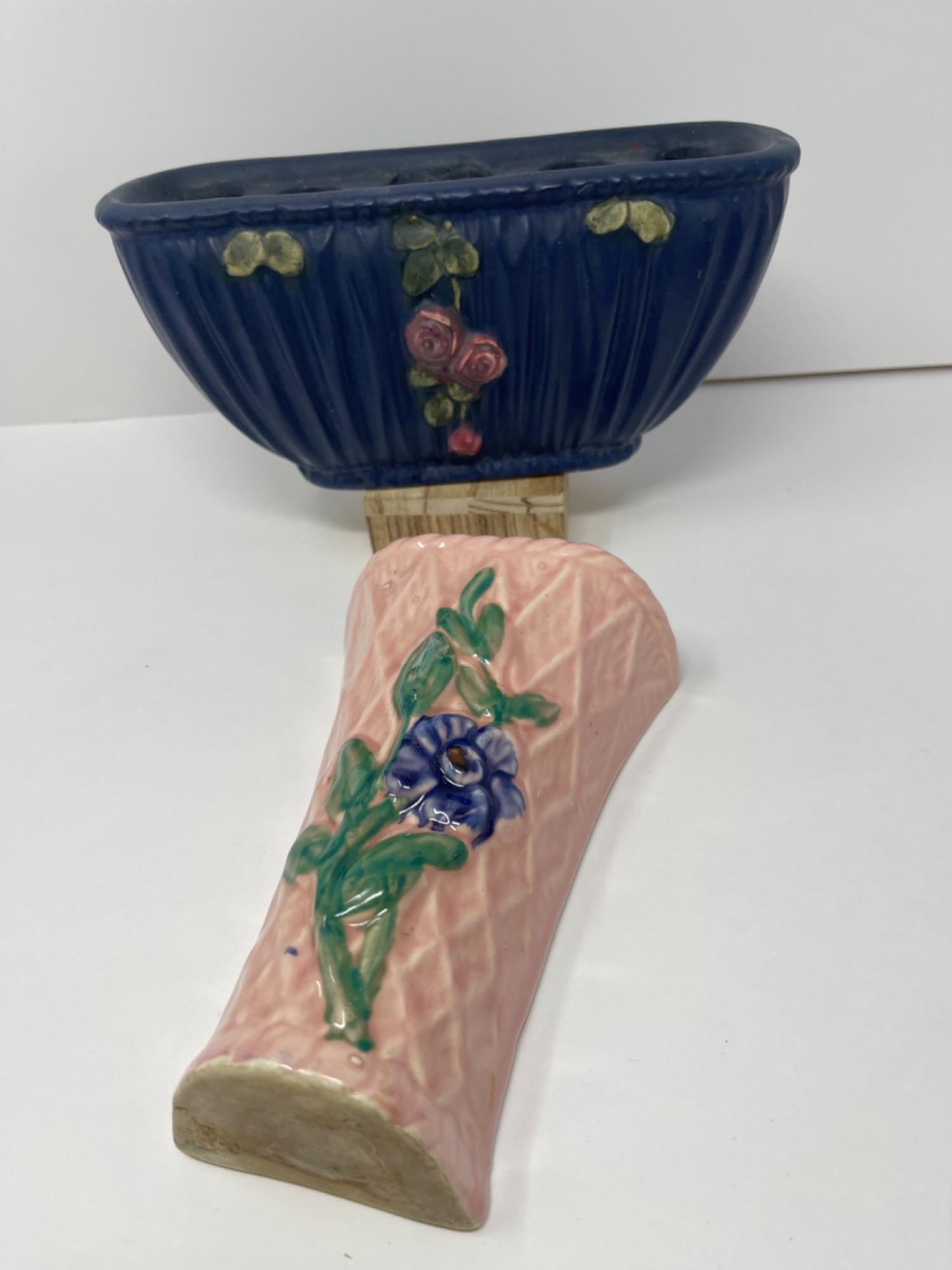 Lot # 95 - Weller Floral Motif Ceramic Vase and Pink Wall Pocket