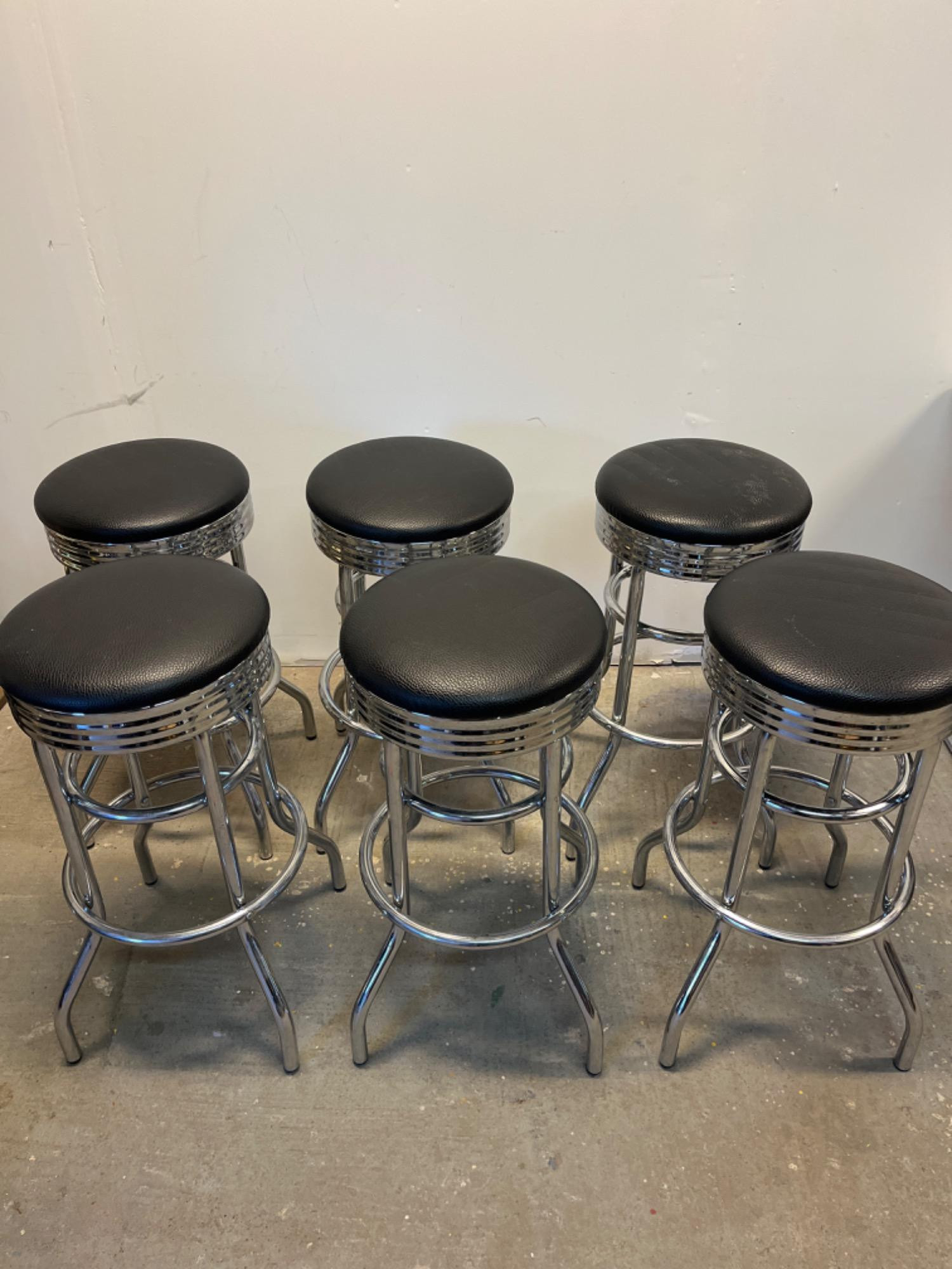 6 Chrome Stools with Faux Leather Seats