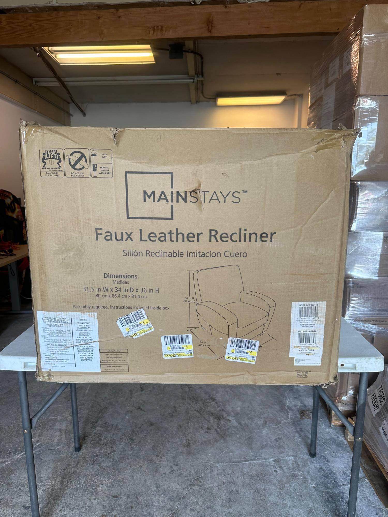 Lot # 80 - Mainstays Faux Leather Recliner - NEW