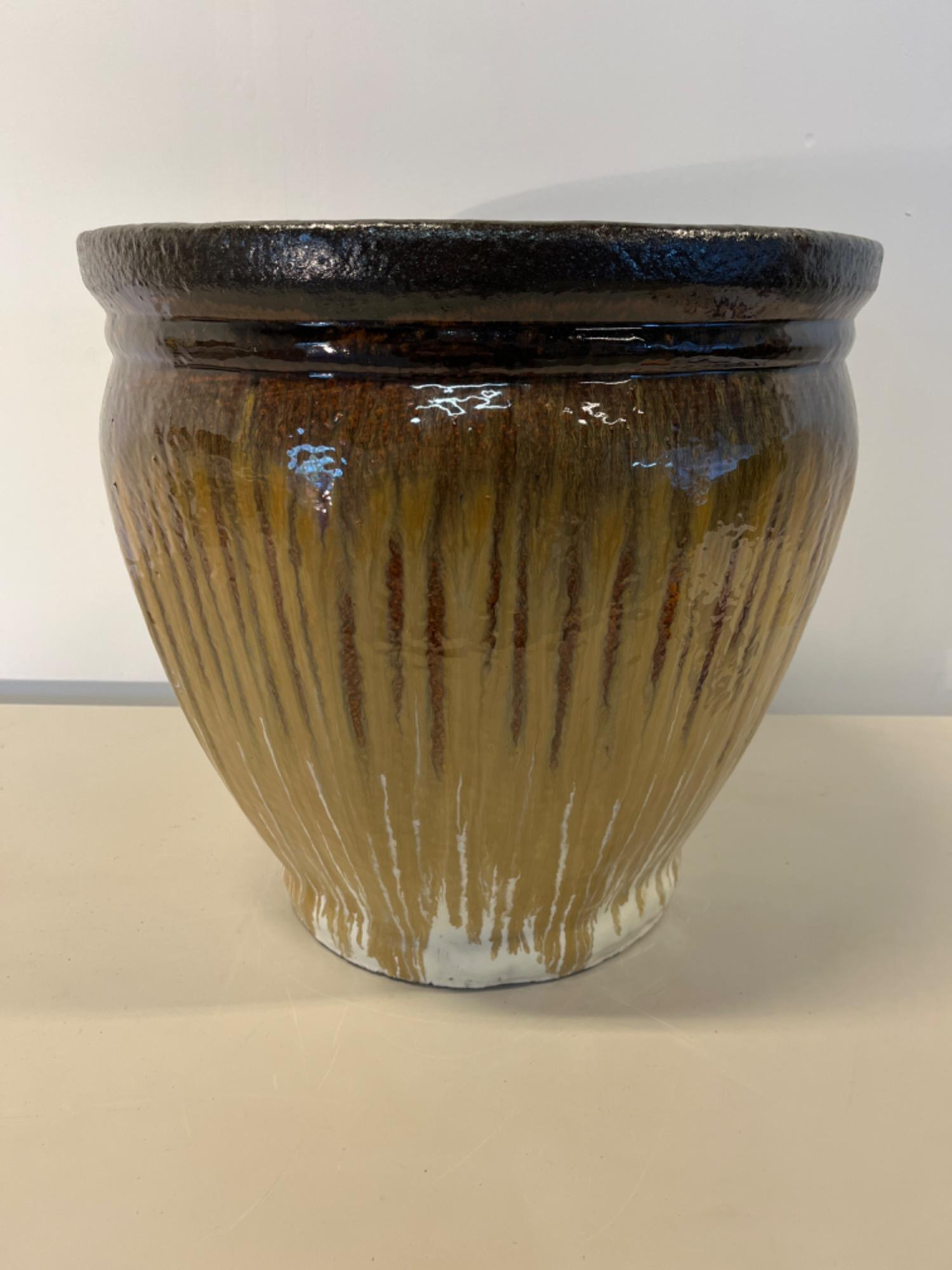 14.5” Drip Glaze Terra Cotta Planter Bottom Dia: 11” Drainage hole