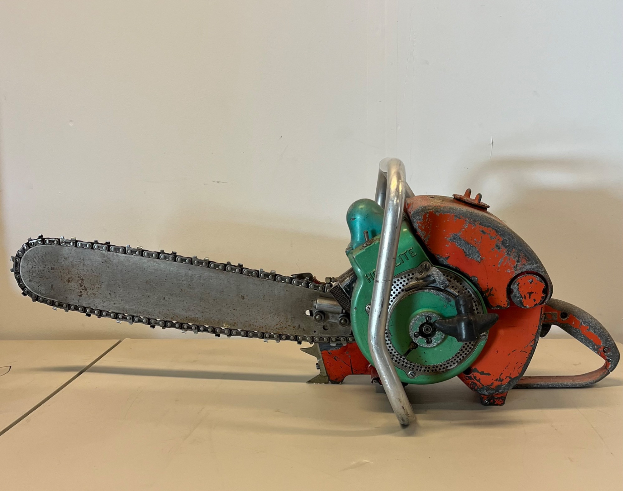 Vtg. HOMELITE Chainsaw - Model 17 w/ 17” Bar & Log Spikes Untested