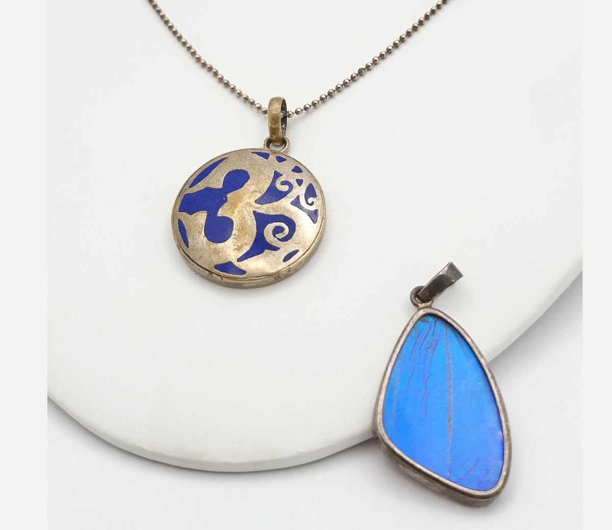 Lot # 83 - Tibetan Om Lapis Pendant Necklace & Real Butterfly Wing Pendant