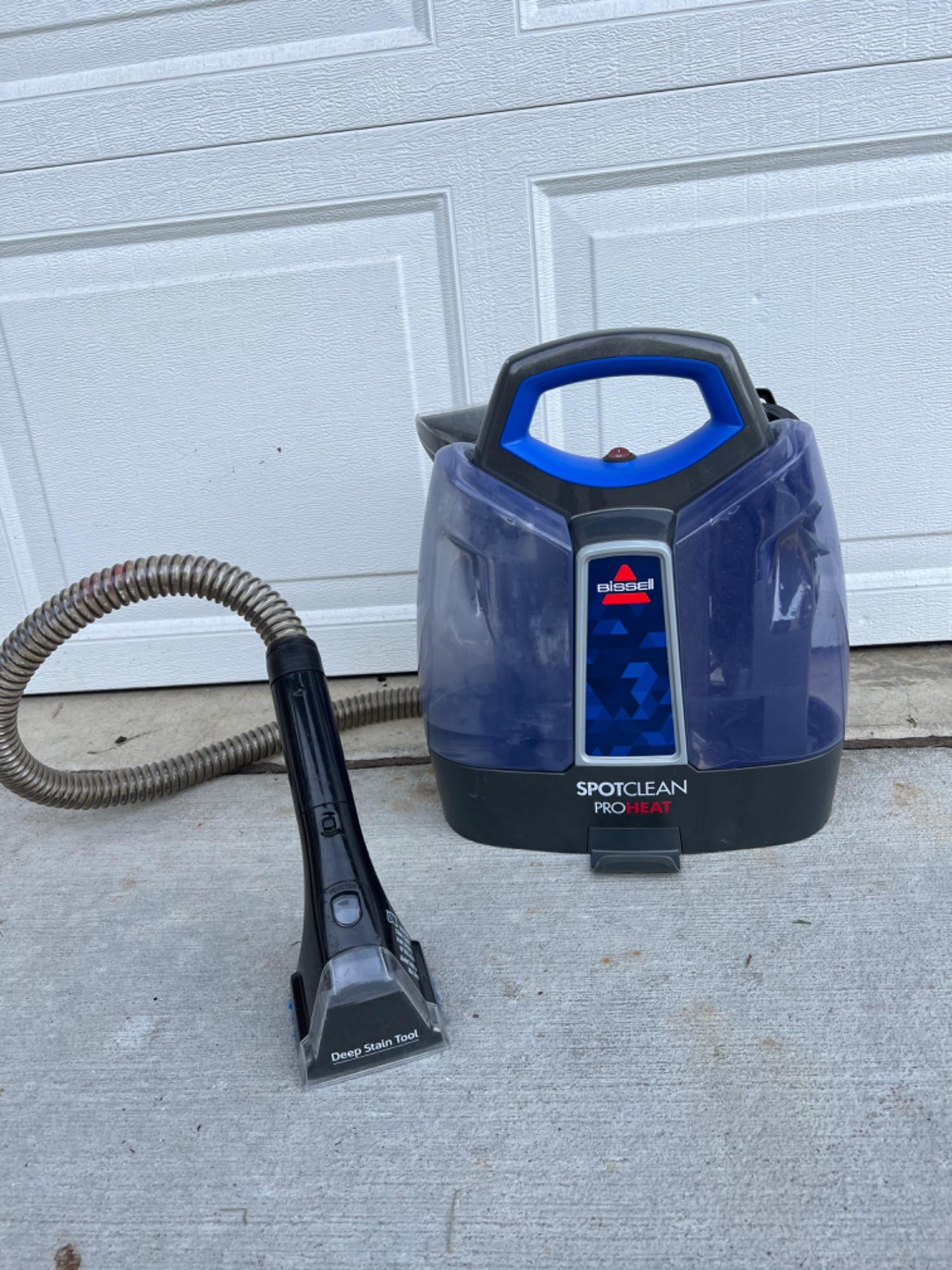 Bissell portable spot cleaner with hose and two attachment heads. Model 2694. Working condition.