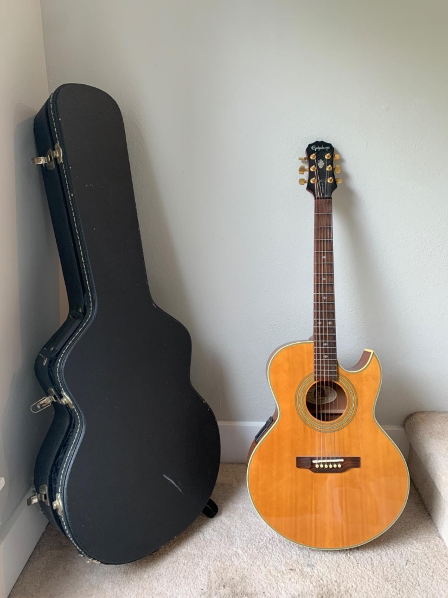 Beautiful acoustic guitar with hard case. Gibson Epiphone Spanish model In fabulous condition.