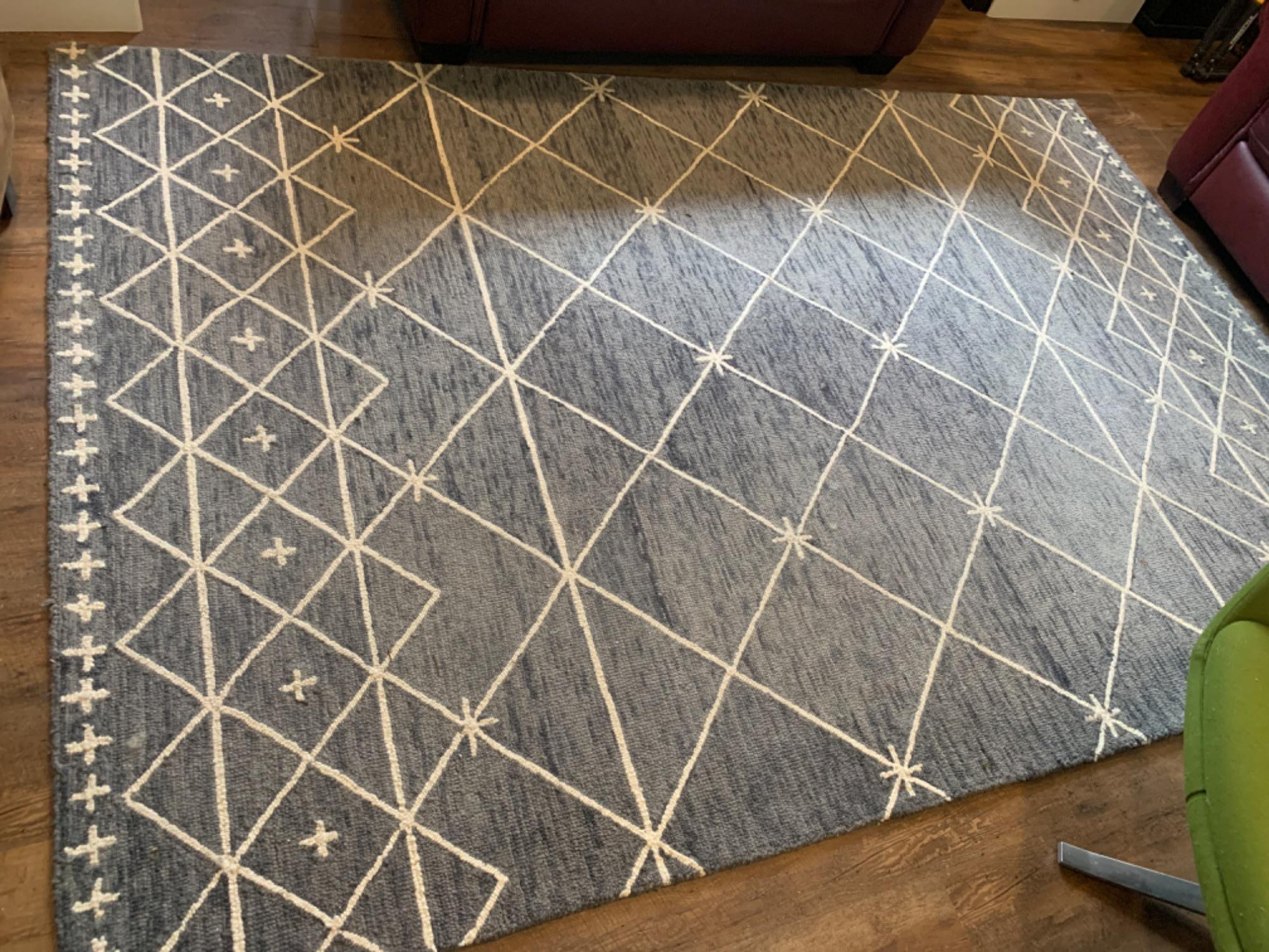 Hand tufted. Cream and Pewter color. Clean and well cared for. 6x9 foot dimensions.