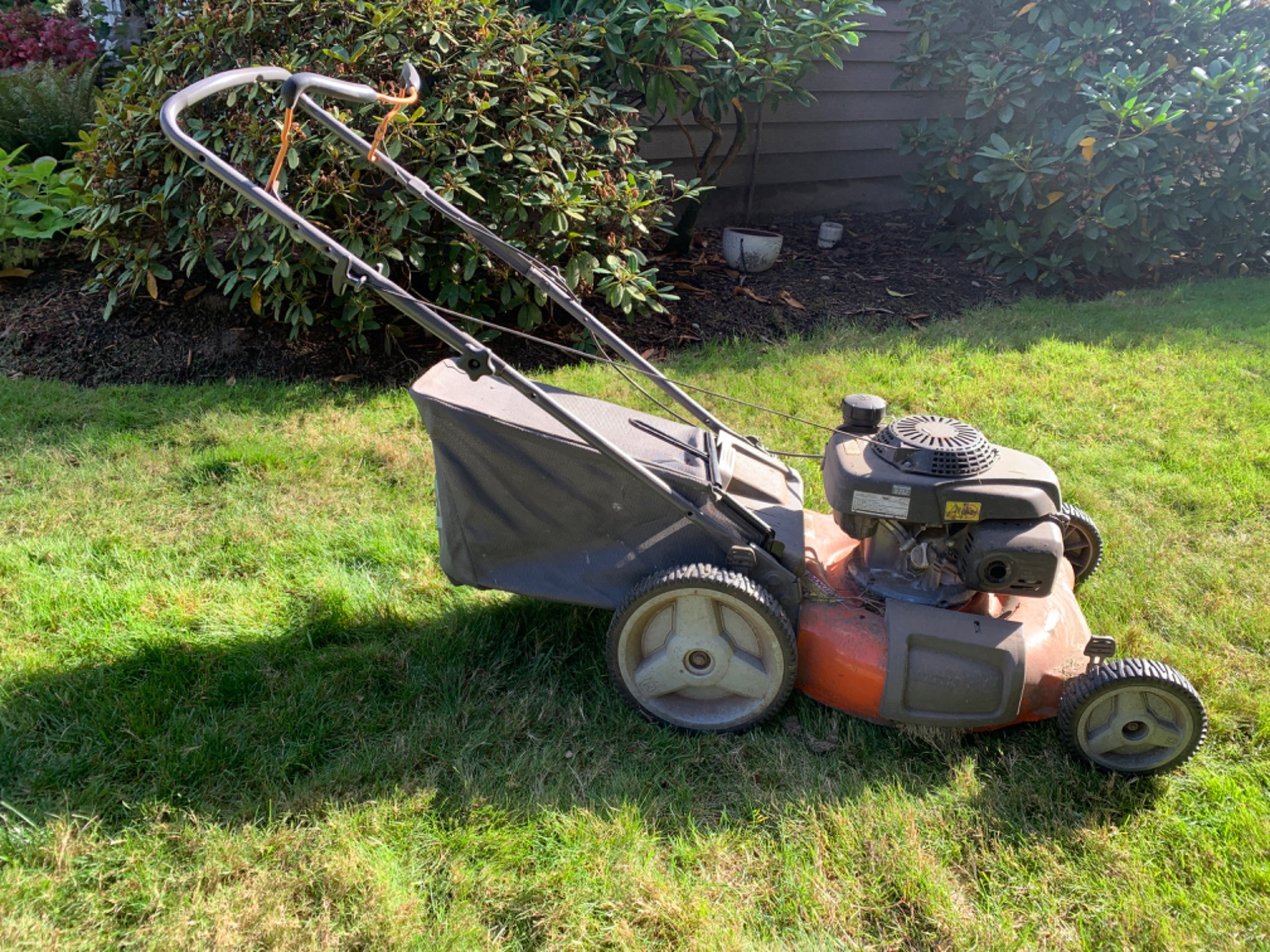 Husqvarna mower not self-propelled Powered up and includes bag. Model #96133001903 Data plate hard to read for specifics.