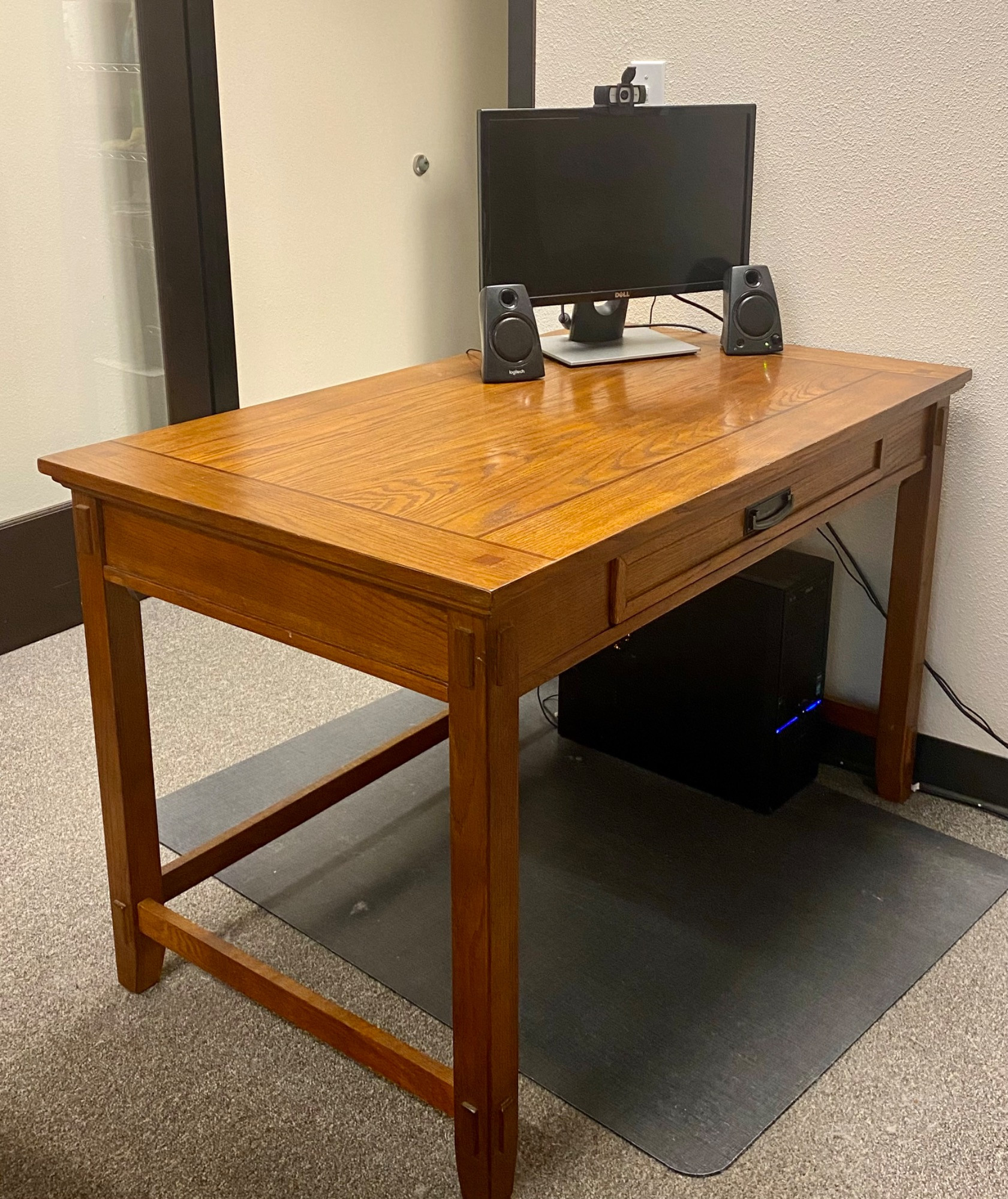 Ashley office desk. One drawer. Honey colored wood. In good condition