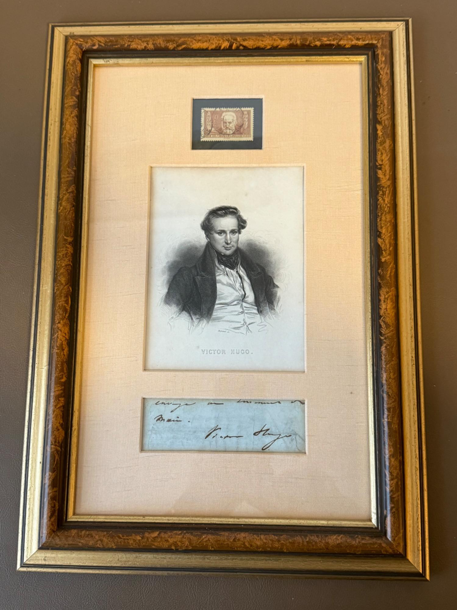 Lot # 63 - Victor Hugo Print- Stamp, Writing and Portrait