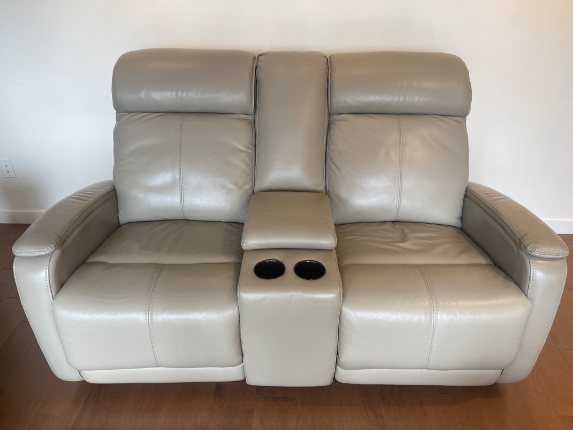 Genuine Leather Electric Reclining Loveseat #1 Very good condition. Only minor stains or spots to leather, barely noticeable at all. Everything has been tested, including USB plug-ins on couches and everything works perfectly.