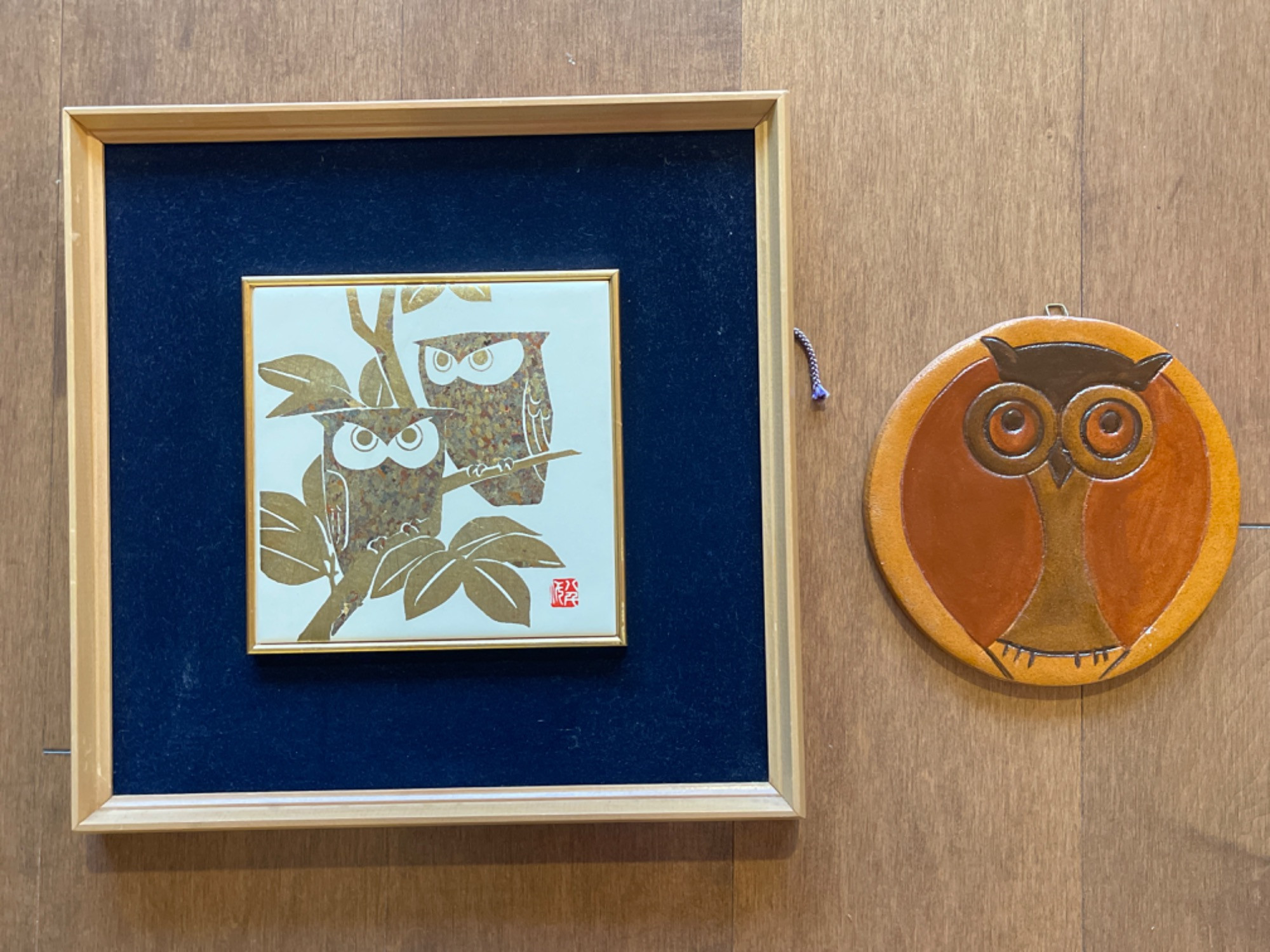 Lot # 54 - Original Kanasawa Leaf Japanese Owl Art and Danish Round Tile Art