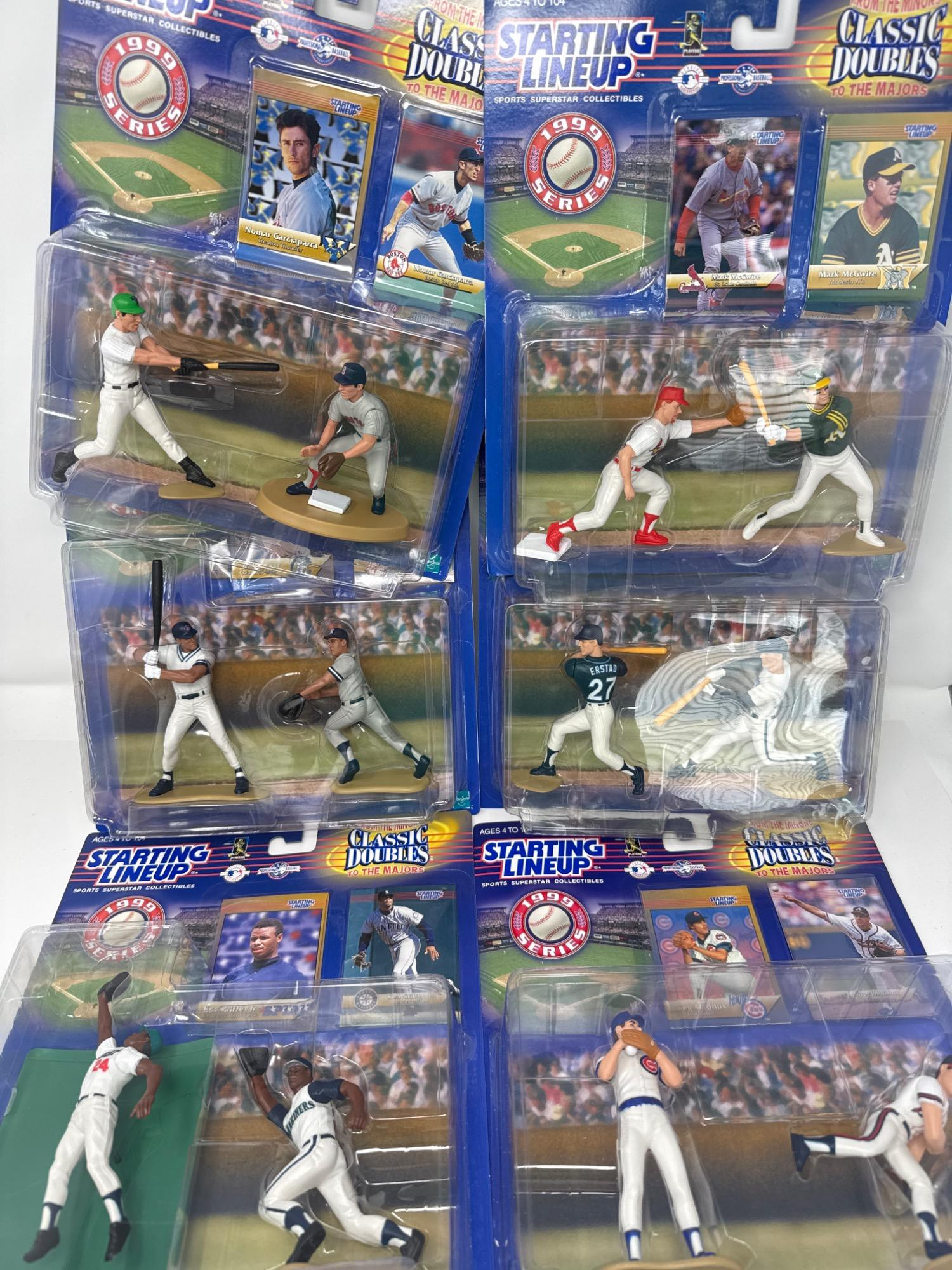 NIB. Classic doubles sets by Starting Lineup. Ken Griffey JR, Mark McGuire, Nomar Garciaparra, Derek Jeter, Greg Maddux, Darin Erstad. Trading cards included