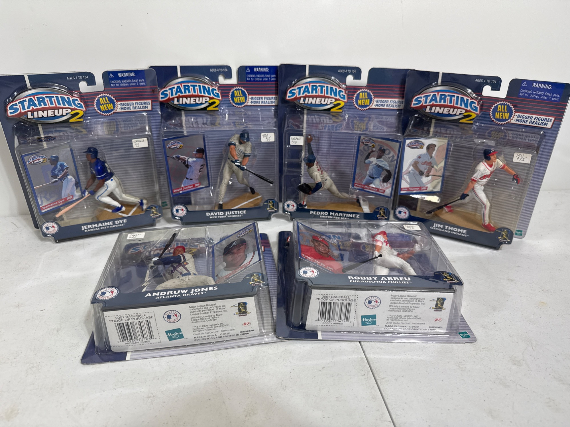 NIB collectibles from starting lineup version two. Jermaine Dye, David Justice, Pedro Martinez, Jim Thome, Andruu Jones, Bobby Abreu. In good condition. Includes collector cards. Great gift ideas in time for the holidays.