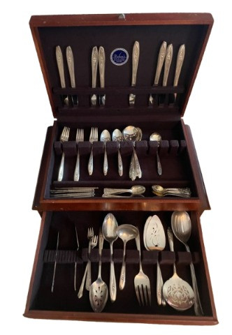 Elegant and timeless, this 70-piece Naken’s Tulip Pattern silver-plated flatware set is perfect for collectors or those looking to add vintage charm to their dining experience. The set includes a variety of utensils, from everyday essentials to specialty serving pieces, all housed in a classic wooden storage case. Includes: A well-preserved set with intricate detailing, making it a fantastic addition to any vintage silverware collection. Ideal for special occasions, display, or everyday use!