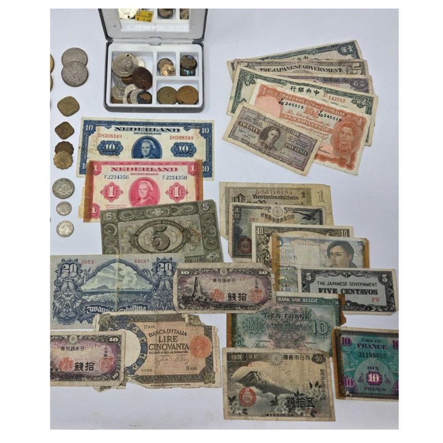 A fascinating collection of circulated foreign currency, featuring a mix of banknotes and coins from various countries. This lot includes historical and international pieces, perfect for collectors, hobbyists, or those looking to explore world currency. Highlights include: Great for anyone interested in numismatics, history, or adding to an existing collection. All items show signs of circulation. See photos for details!
