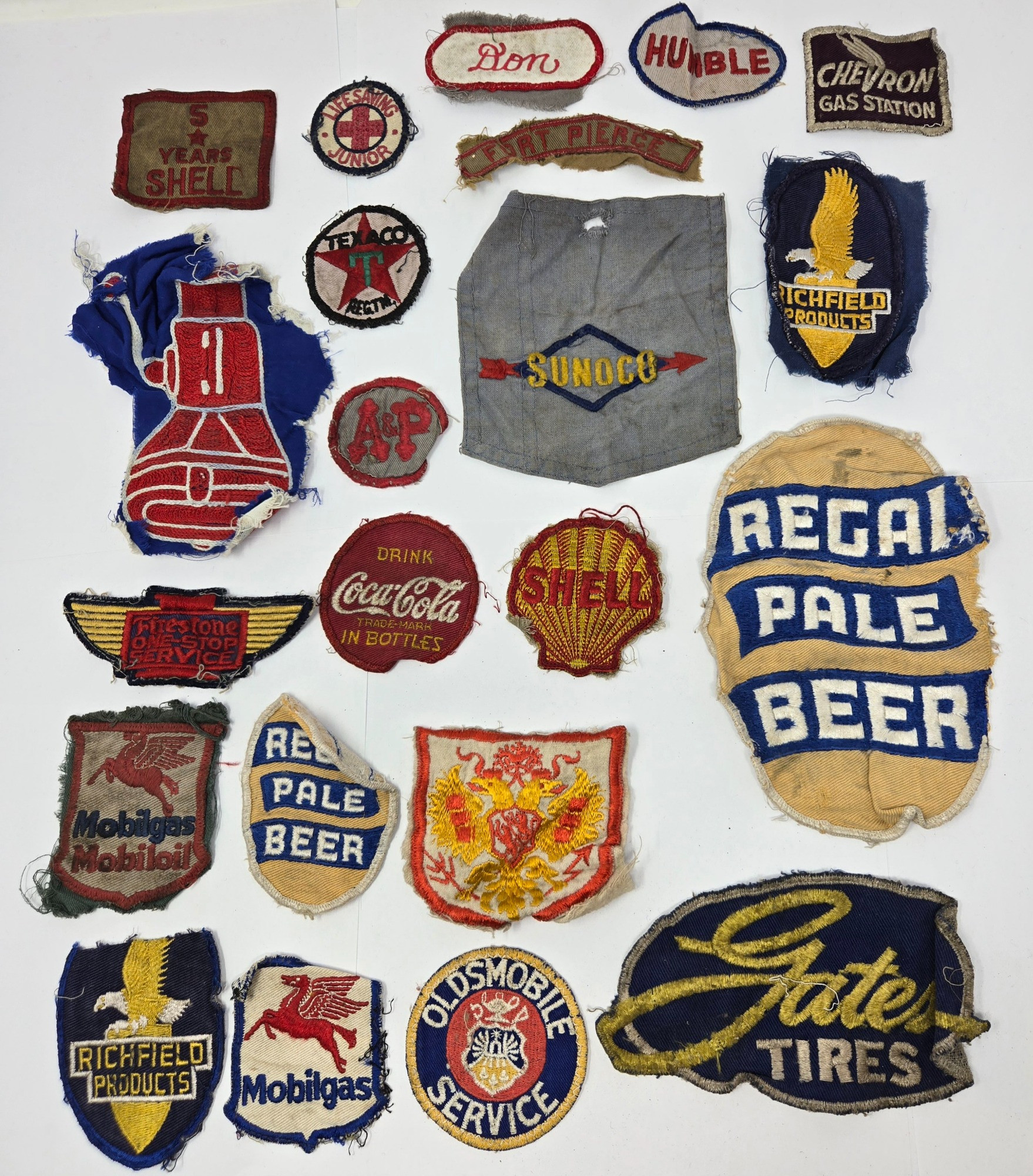 This collection of vintage patches showcases classic branding from beer, automotive, and soda companies, including Coca-Cola, Regal Pale Beer, Shell, and more. These well-loved patches have a nostalgic charm, showing signs of age and wear that only add to their authenticity. Perfect for collectors, restorers, or those looking to repurpose them into unique projects. Whether you're adding to a collection or sewing them onto your favorite jacket, these patches bring a touch of retro history with them!