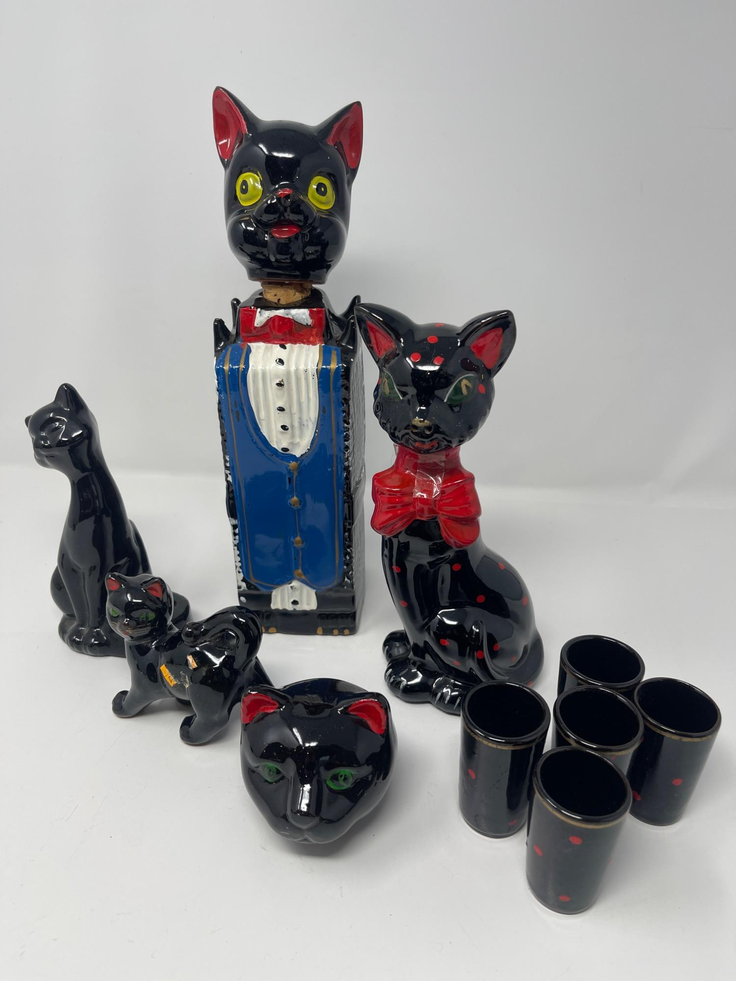 Lot # 41 - Vintage Ceramic Black Cat Decanters: Anthropomorphic, Saki Set, & More