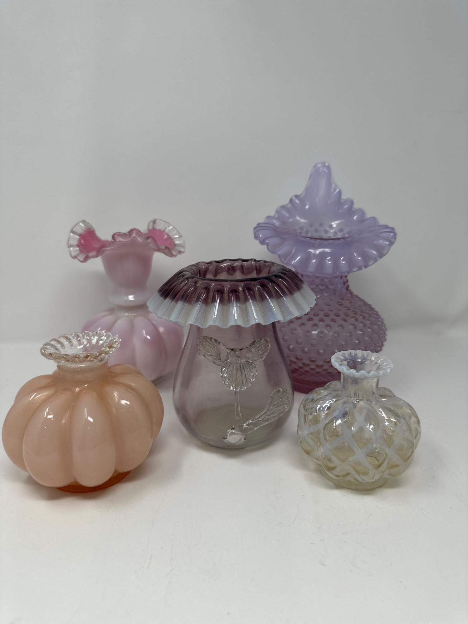 Lot # 45 - Fenton & Art Glass Vases Collection: Pink Melon, Dusty Rose, & More