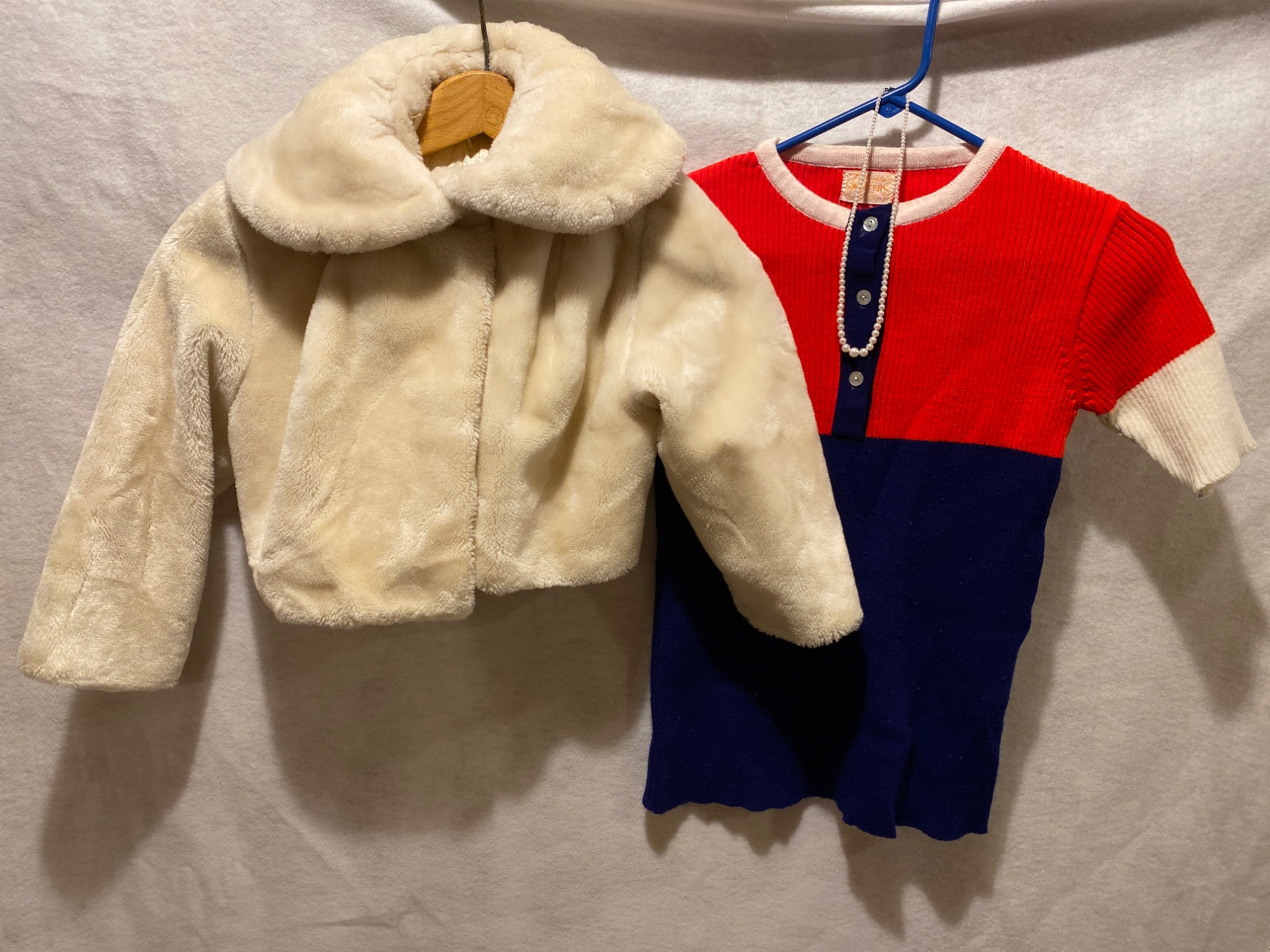 Lot # 156 - Vintage All-Faux Fur Jacket & Sweater w/ Pearl Necklace – Small