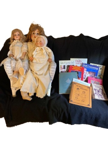 Lot # 166 - Vintage Doll Trio w/ Wicker Chair & Doll Collectors’ Library