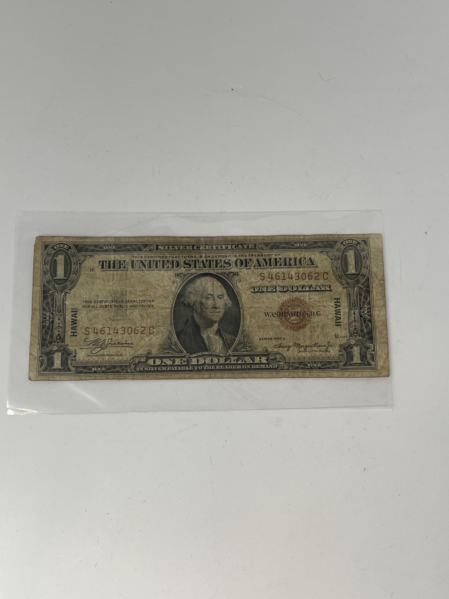 Silver certificate one dollar United States Hawaii bill.