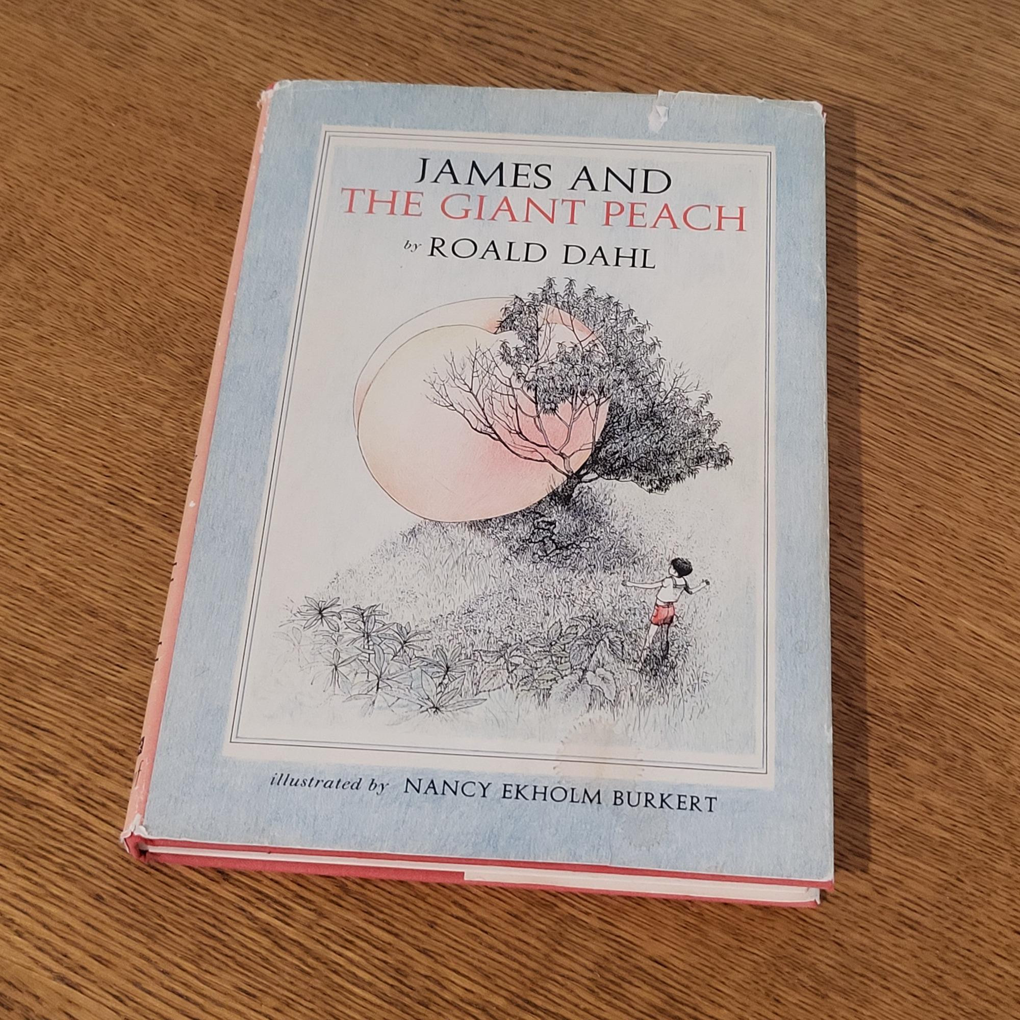 Classic childrens storybook, James and the Giant Peach by Ronald Dahl, hard back with dust cover, 1961.