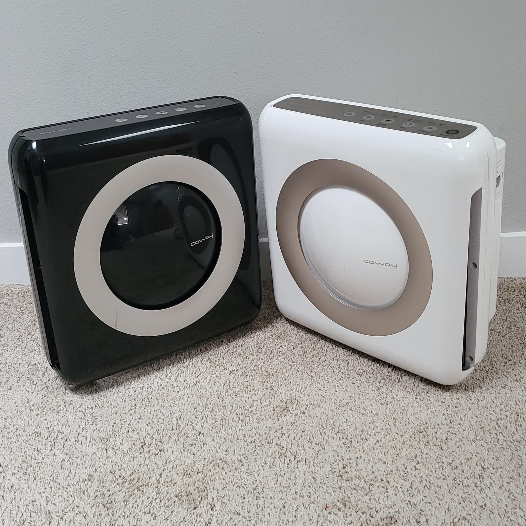 Two, air quality monitoring systems by Conway. Both are working. Replaceable filters. Enhance the air quality in your home with the Conway AP-1512HH True Hepa Air Purifier. This pair of console-style air purifiers come in sleek white and black colors and cover up to 326 sq ft room. They feature touch control panel and three different speeds to choose from for optimal air cleaning. The Conway AP-1512HH uses True HEPA filtration technology to capture 99.97% of airborne particles, including odors, dust, and pollutants. It also comes with a filter replacement indicator, making it easy to keep track of when it's time for a new filter. This air purifier is perfect for anyone looking to improve the air quality in their home or office.