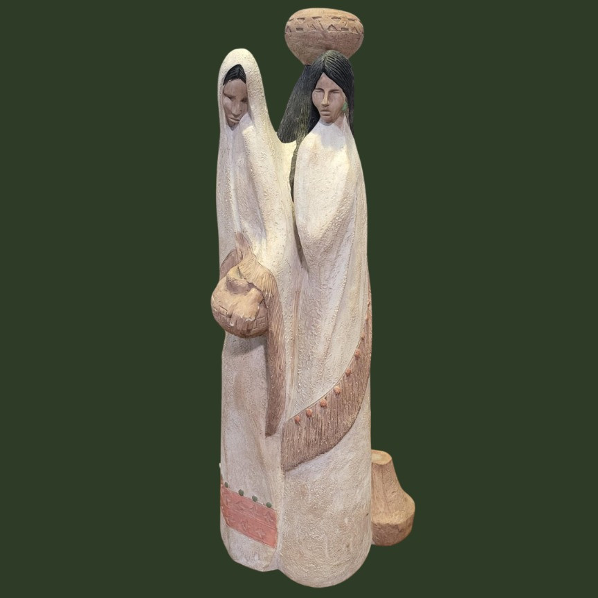 Acoma Pueblo Earth, Wind & Fire Southwestern Indian Women Sculpture. Textured clay/composite statue of three women by Austin Prod Inc 1988.
