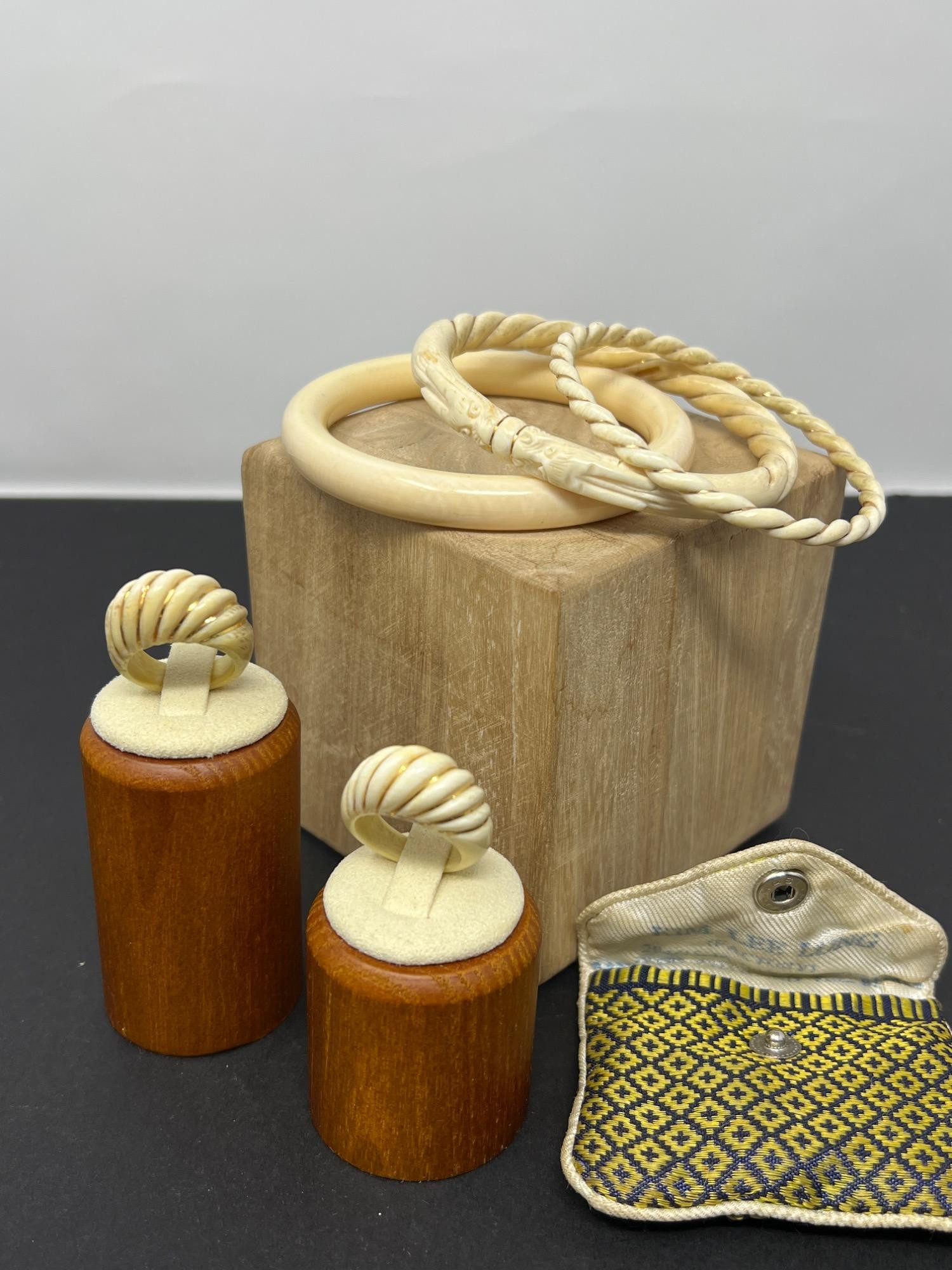 Lot # 50 - Bone & 14k Gold Threads - Bracelet & Rings