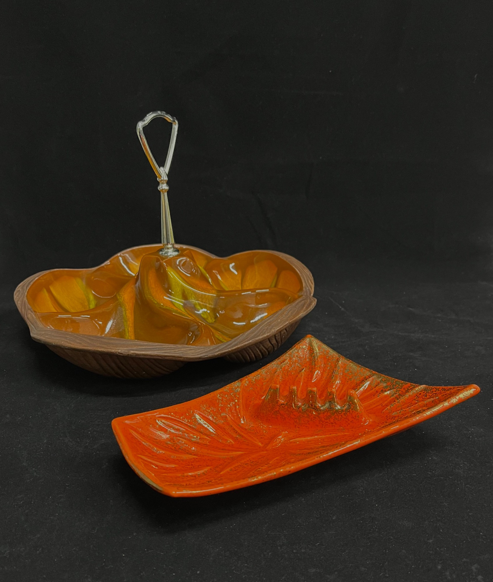 Drip Glaze 608USA Divided Dish and USA Orig Cal 810 Ashtray