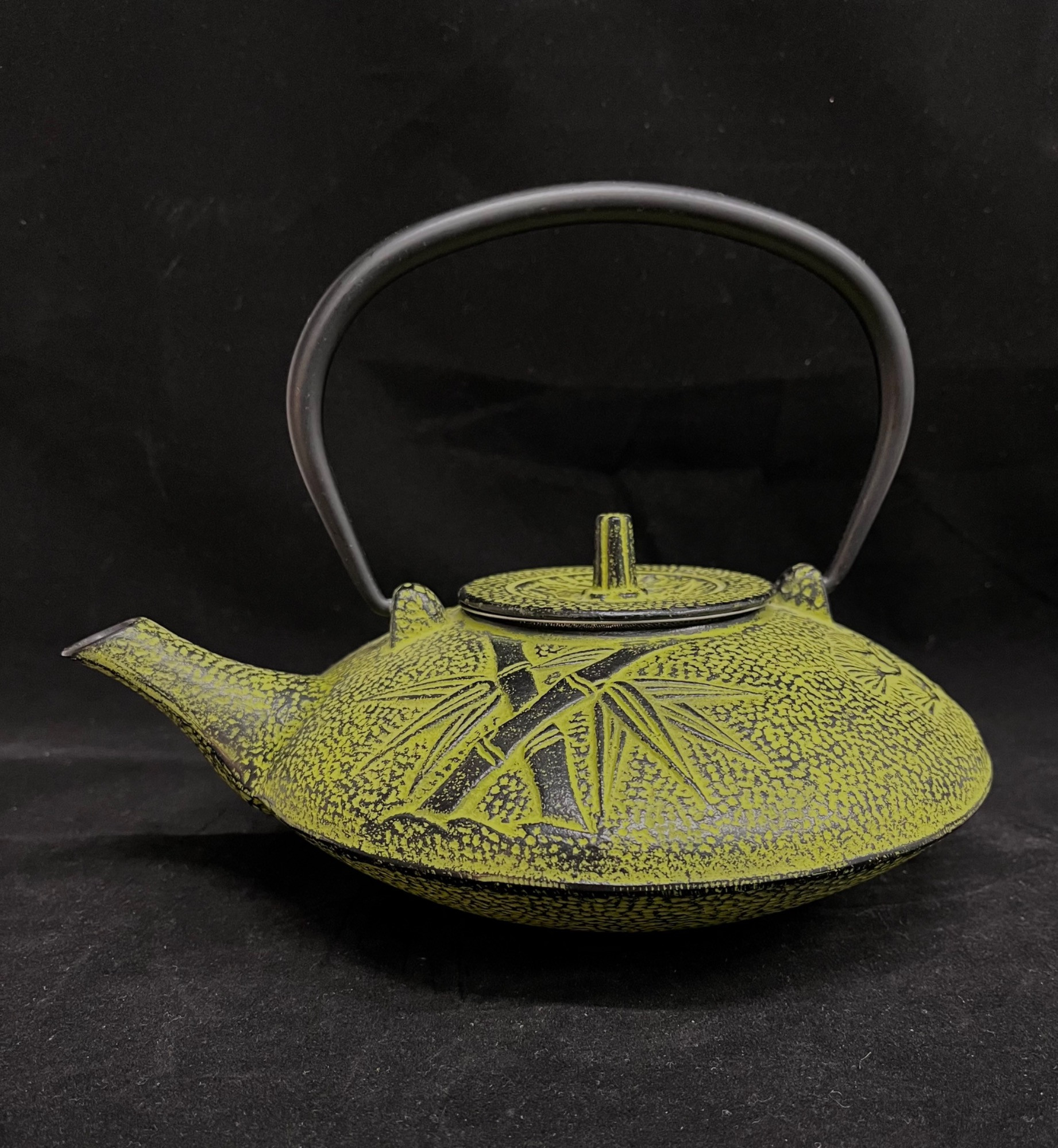 Cast Iron Green Bamboo-Themed Tea Pot