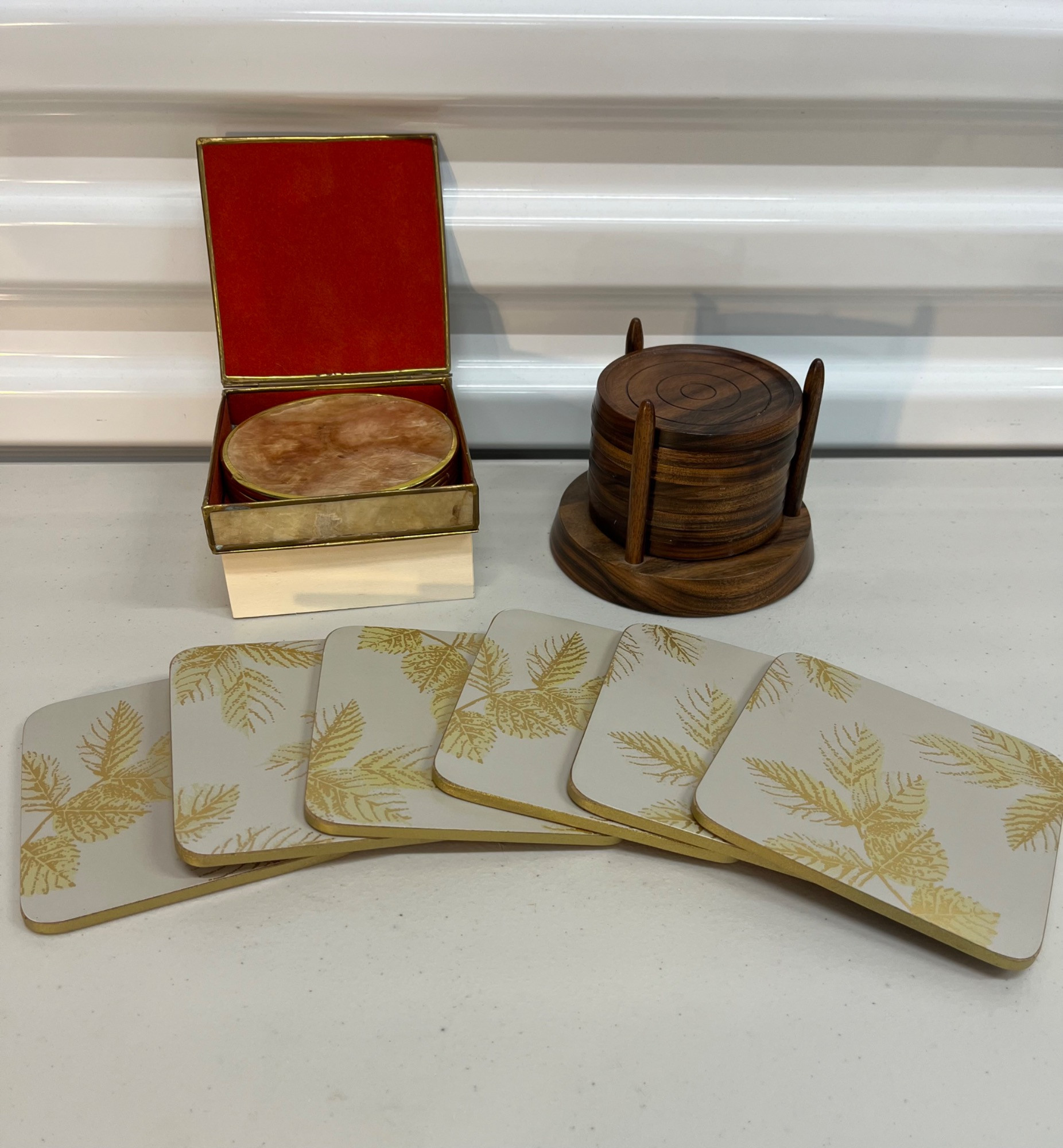 Lacquered Ivory Shell Coasters Set/6 with Hinged Shell Box