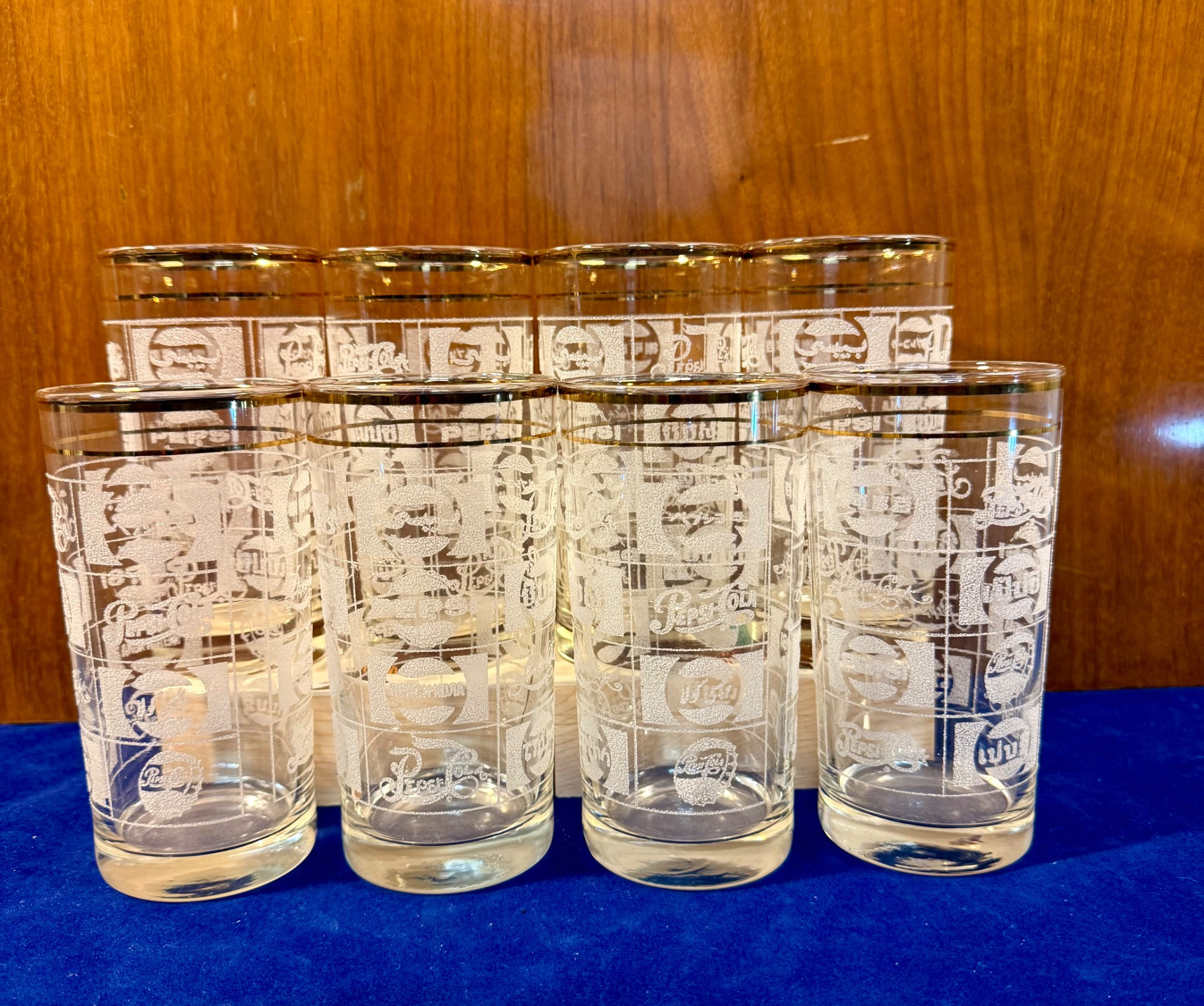 Vintage Pepsi Bartlett- Collins Frosted World Drinking Glasses Collectors Item 24k Trim