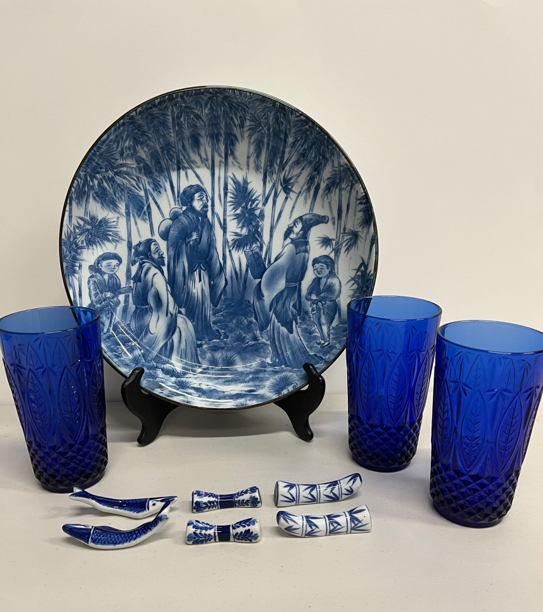 Royal Sapphire Crystal, Chopstick Holders, Japanese Porcelain Bowl