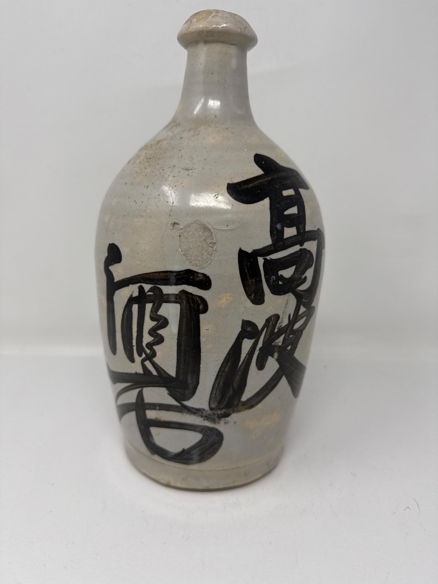 Vintage Japanese Stoneware Sake bottle Hand painted and made. Glazed