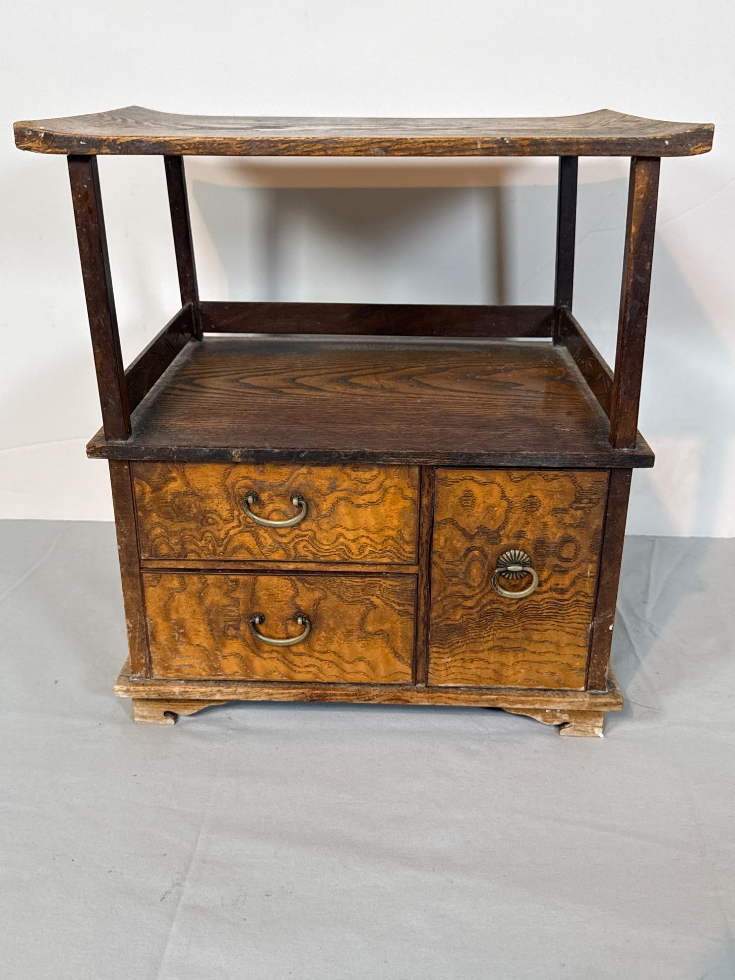 Traditional Vintage Korean Cabinet- Jewelry, Writing or Storage Vintage Korean chest. Table top size. Original hardware. Looks to be two different types of wood. Drawer fronts are marbled wood.