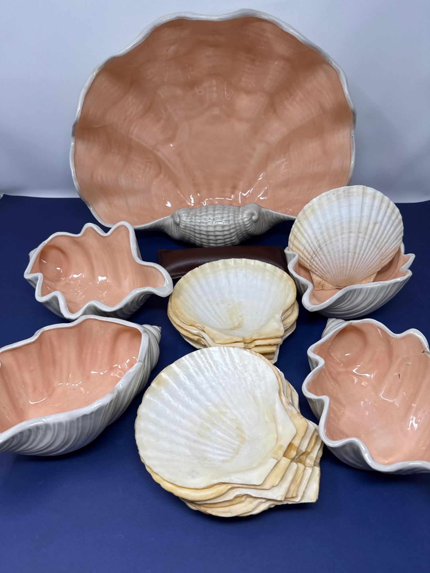 Lot # 102 - Vintage Handmade Glazed Ceramic Shell Dishes, Scallop Shell Servers