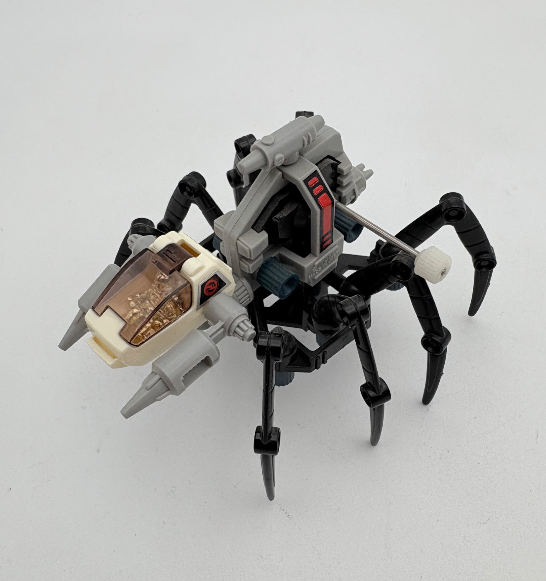 We believe this is a classic Zoids Spider toy from Tomy circa 1980s. Wind the long-stem handle and it moves just like a