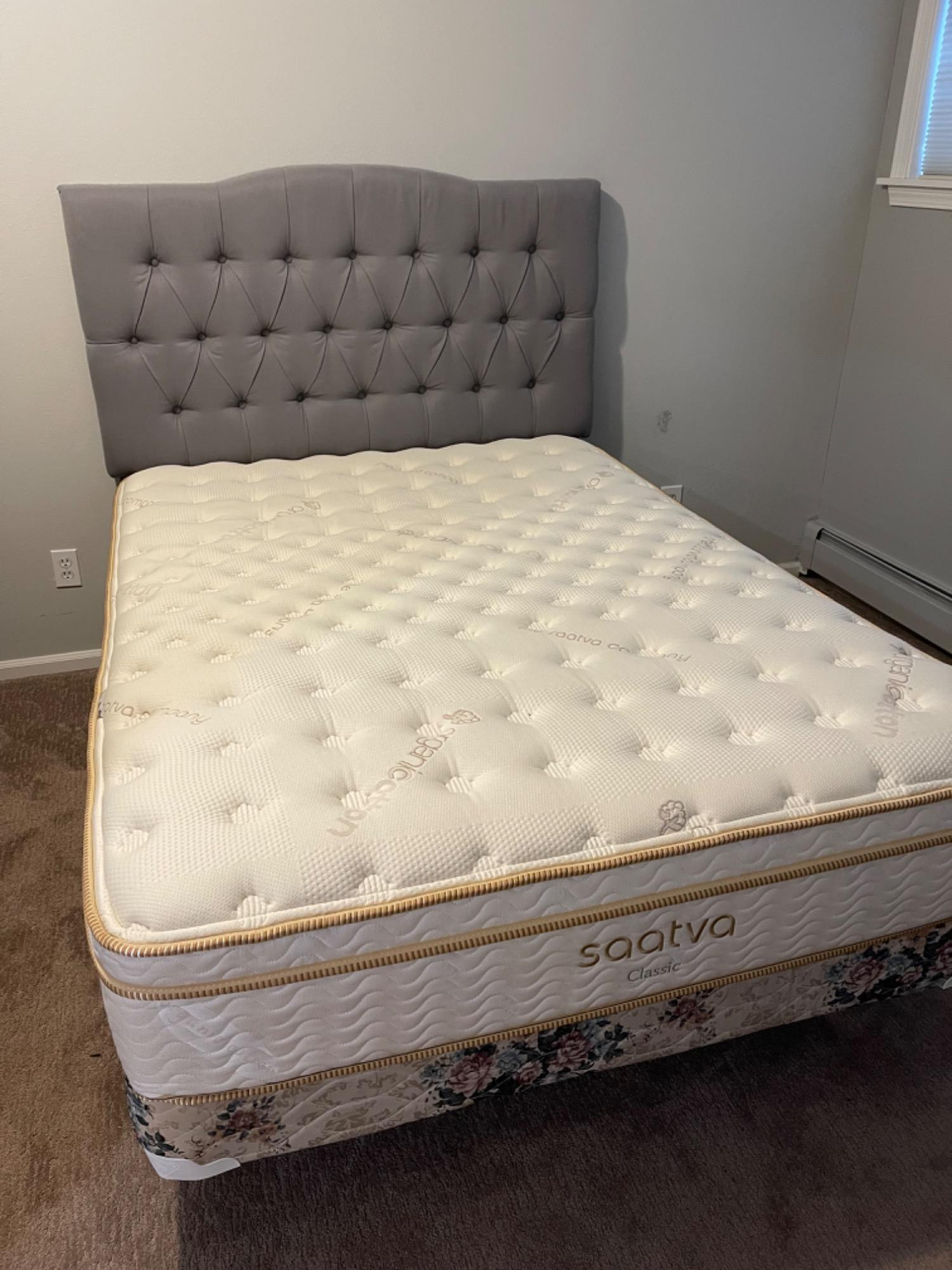 Full Size Bed + Mattress & Box Spring All look to very lightly used and are in good condition. Headboard measurements: 55" W x 54" H